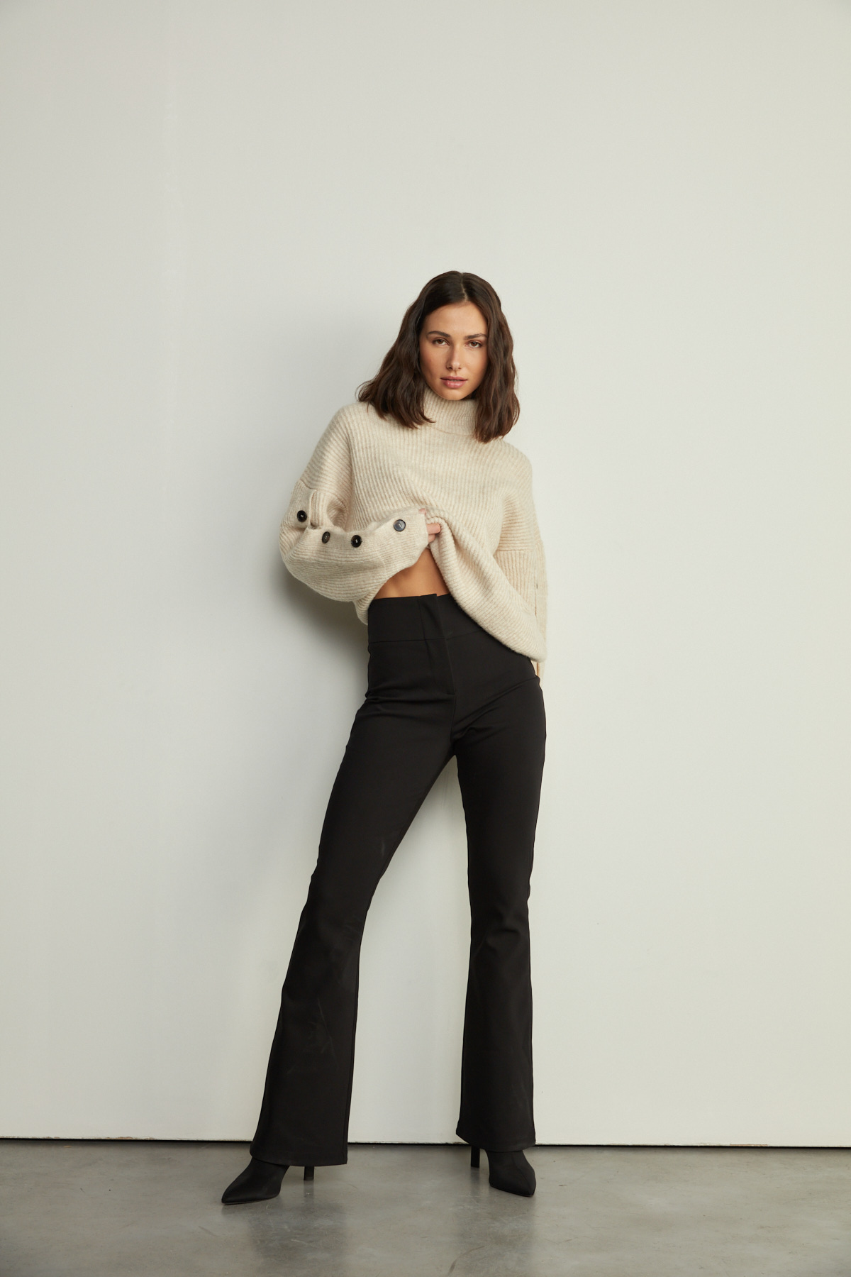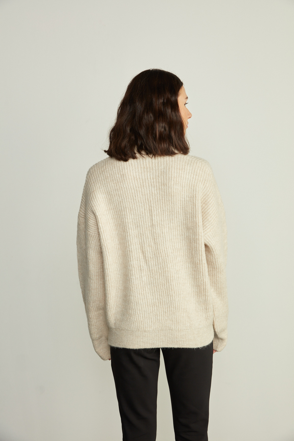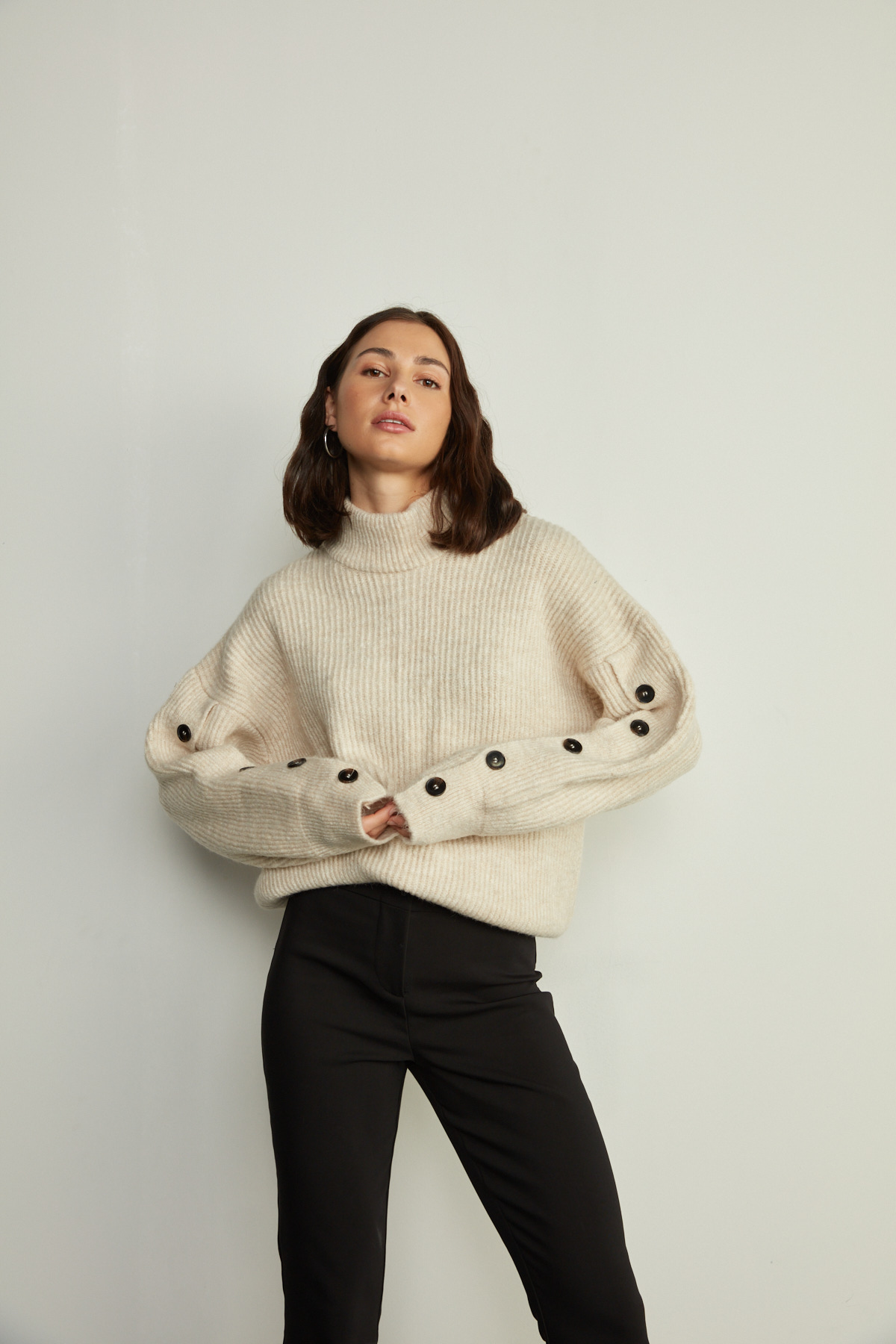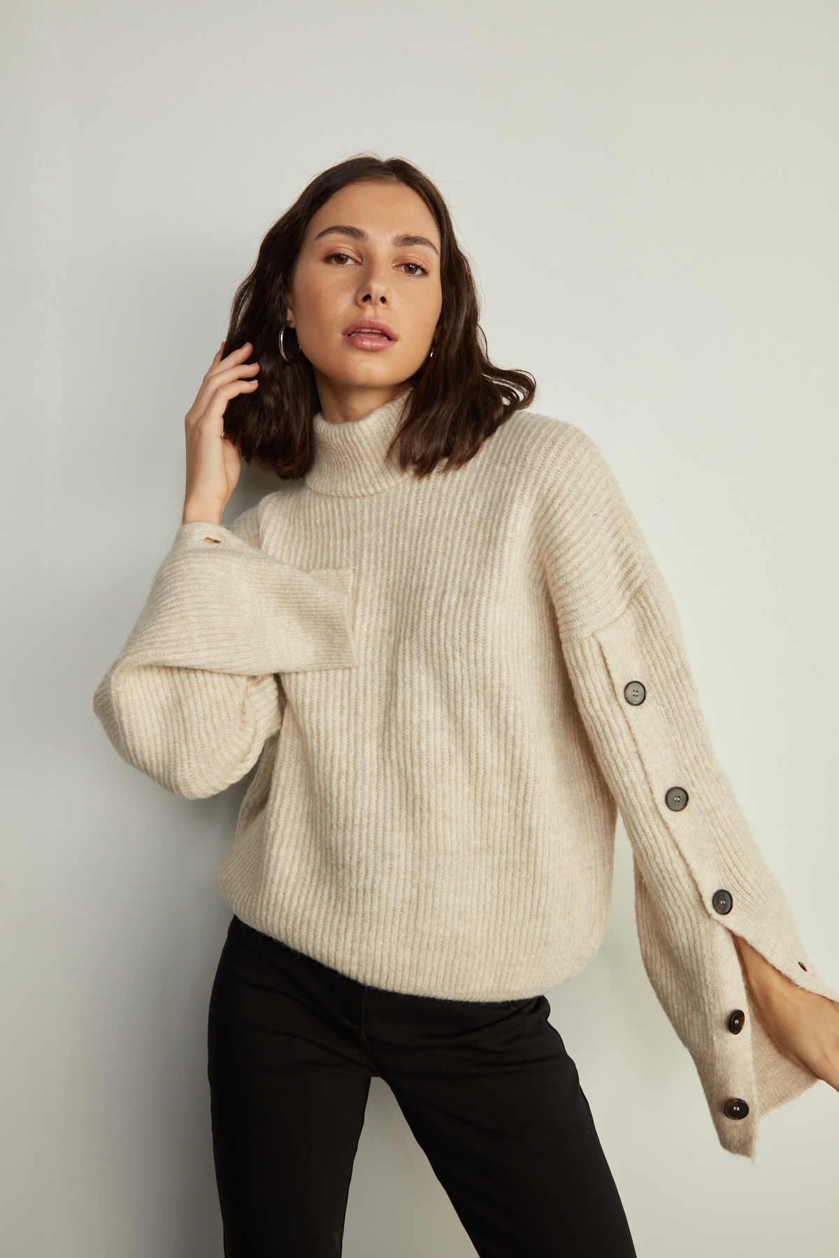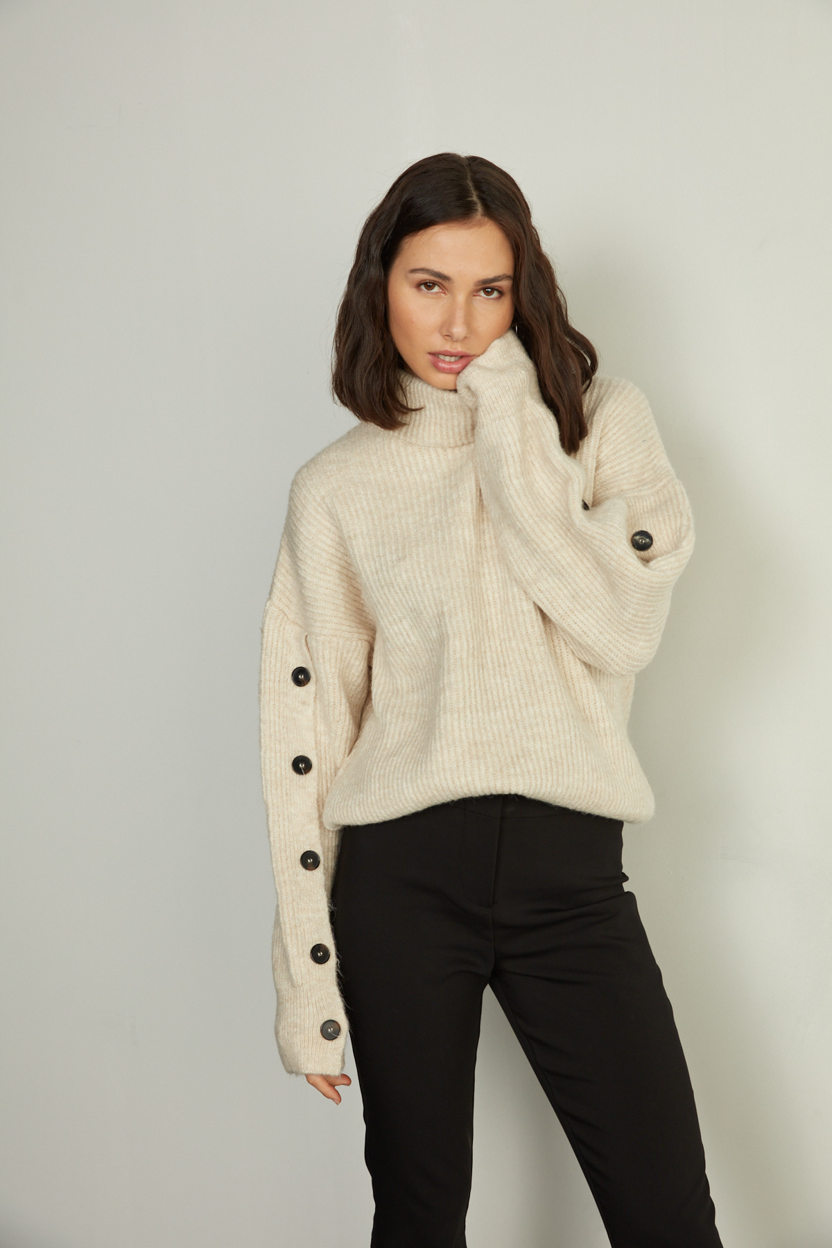 Yarım balıkçı yakalı, düğme detaylı, örgü kazak