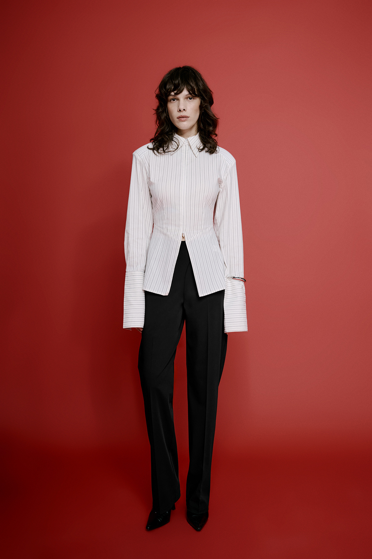 Gizli fermuar kapamalı, önden yırtmaçlı ve bele oturan kesimiyle öne çıkan bu kadın gömlek modeli, modern ve zarif bir stil sunar. Astarsız ve hafif yapısı sayesinde gün boyu konfor sağlarken, geniş manşet detayları tasarıma güçlü bir dokunuş katar. Ofis şıklığından günlük kombinlere kadar farklı stillerle kolayca uyum sağlayan bele oturan gömlek, minimal ve iddialı görünümü bir arada isteyenler için ideal bir seçimdir.