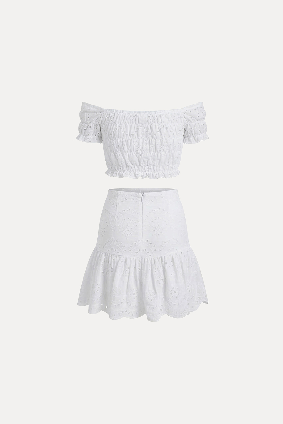 Tam kalıp, Düşük omuz, Fisto işlemeli, Gipeli bluz, Etek beli yandan gizli fermuarlı takım
