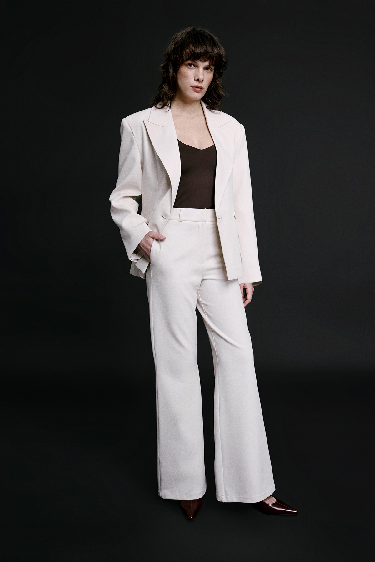 Yüksek bel, Bol paça, Tam kalıp, Fermuarlı,Kadın slim bootcut pantolon.