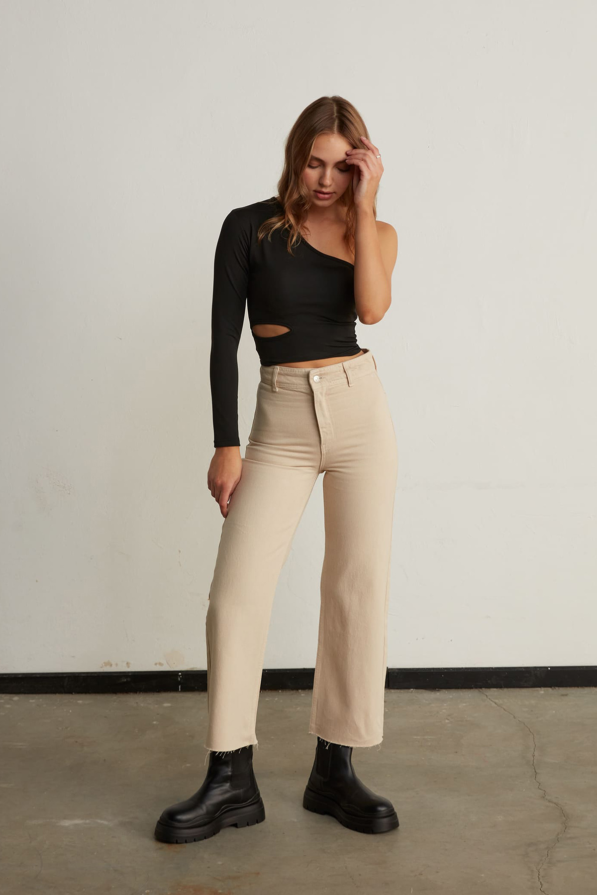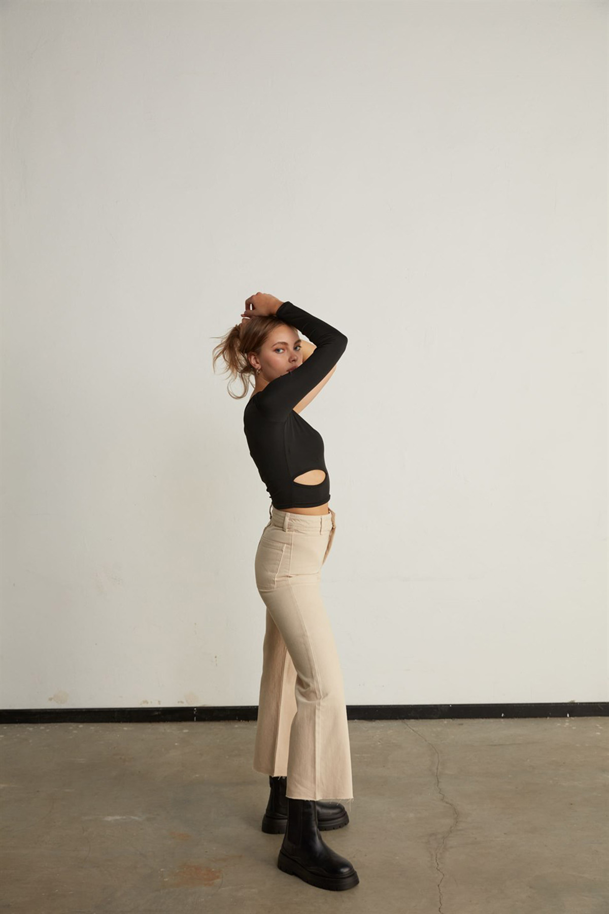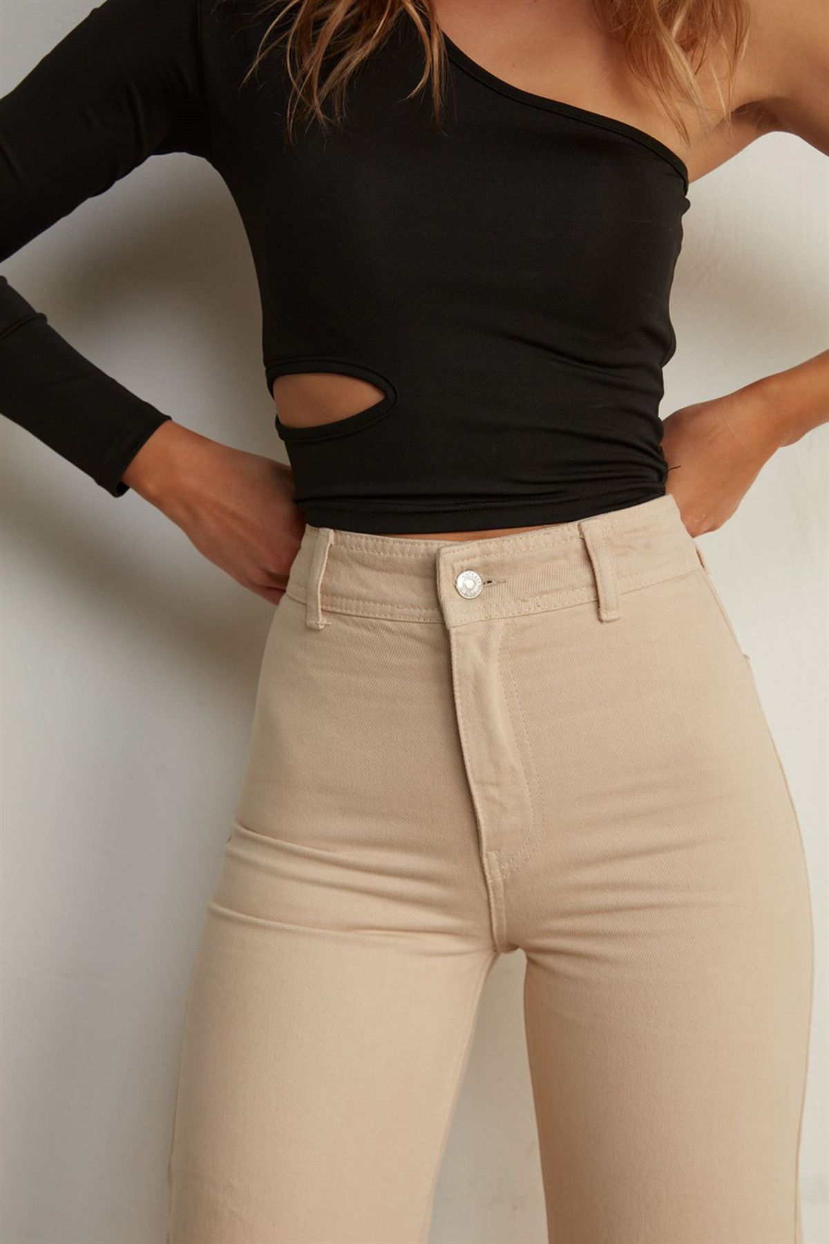 Paçaları lazer kesim, Önü cepsiz, 2 Arka cepli, Dar kalıp, Yüksek bel kadın jean