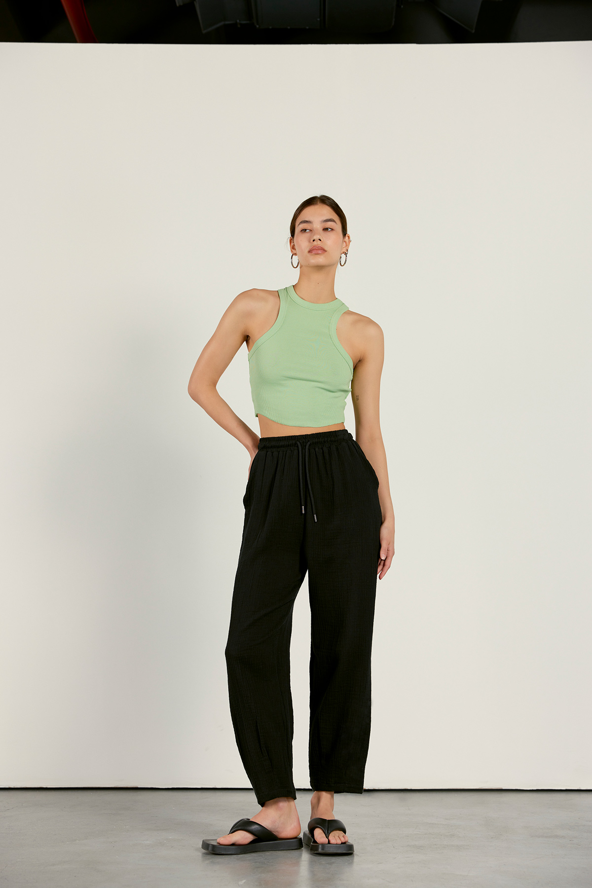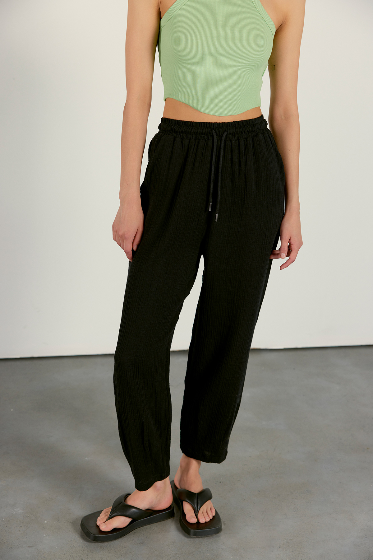 Keten karışımlı jogging pantolon siyah