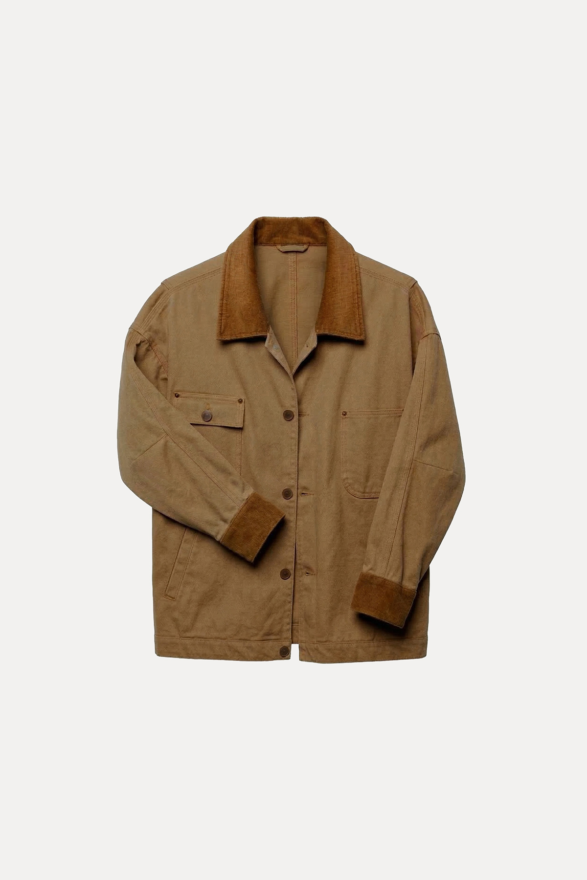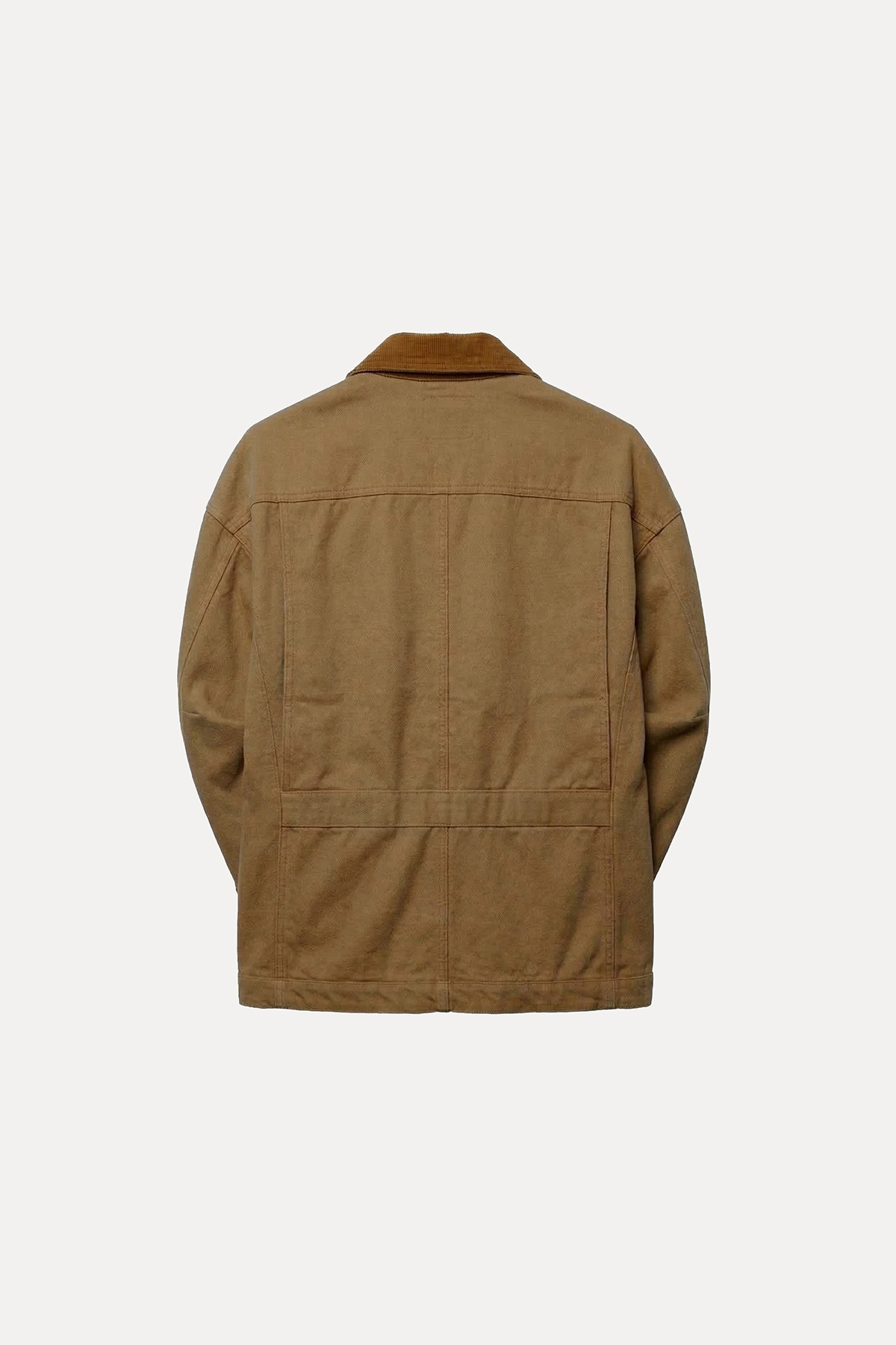 Kontrast yaka, yakası kadife, astarsız, uzun kollu, 4 cepli, düğmeli, kolu çıtçıt detaylı, gabardin ceket.