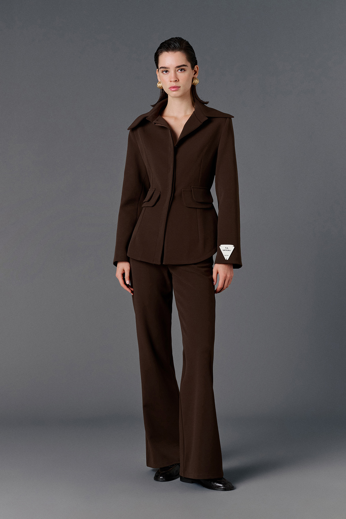 Vatkalı, düğmeli, uzun kollu, manşeti logolu, astarlı,vücuda oturan blazer ceket.
