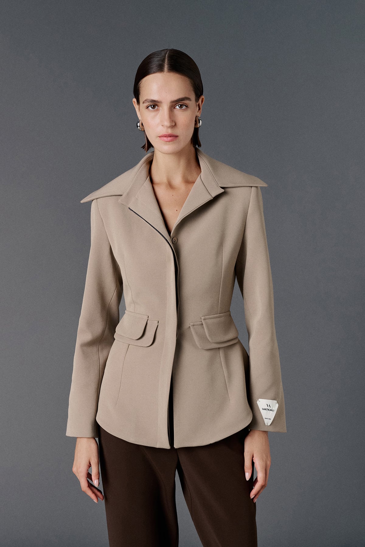 Vatkalı, düğmeli, uzun kollu, manşeti logolu, astarlı,vücuda oturan blazer ceket.