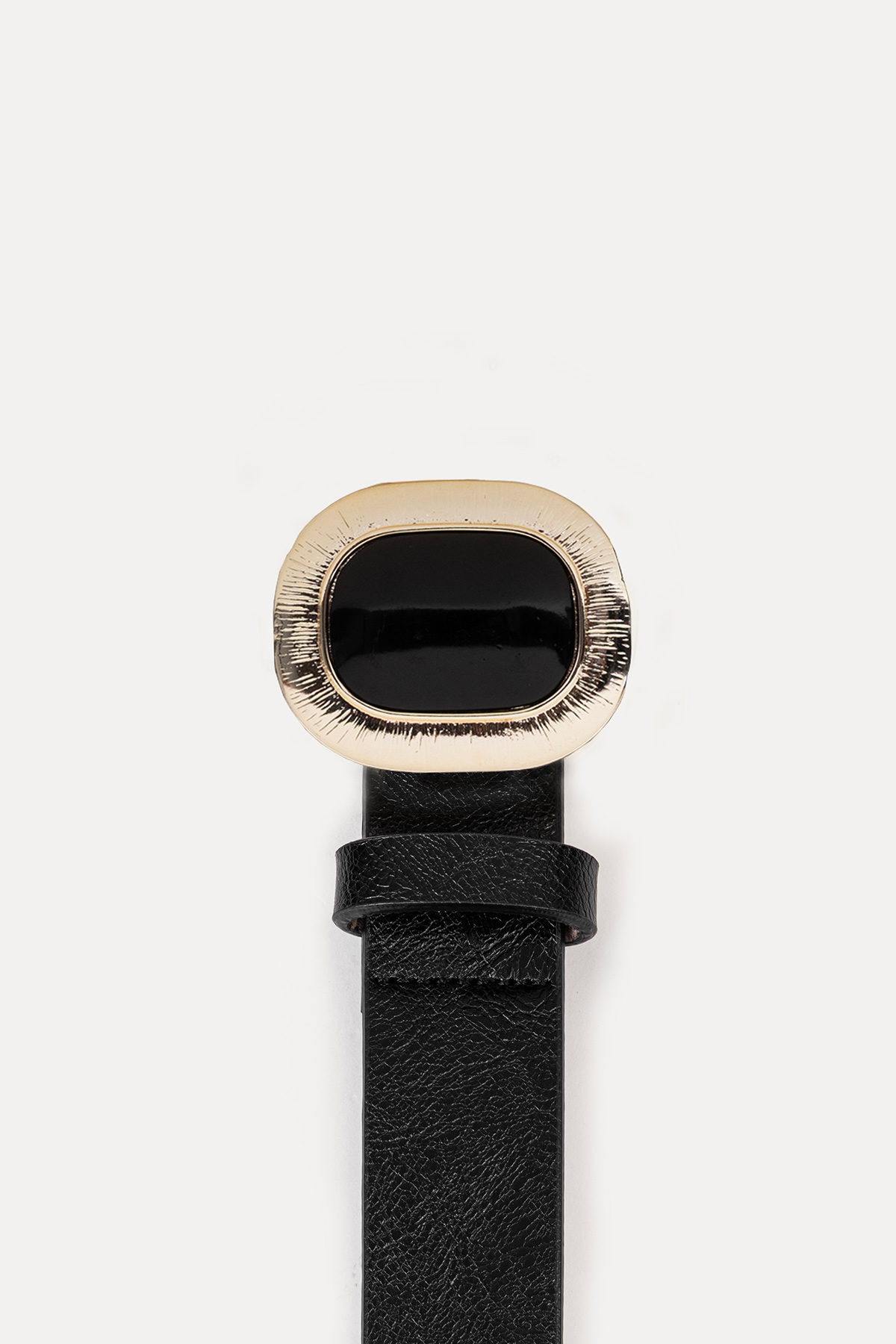 Zarif dokulu tokasıyla dikkat çeken Oval tokalı deri kemer, klasik ve şık kombinler için ideal. Özgün tasarımıyla stilinize sofistike bir dokunuş katar.