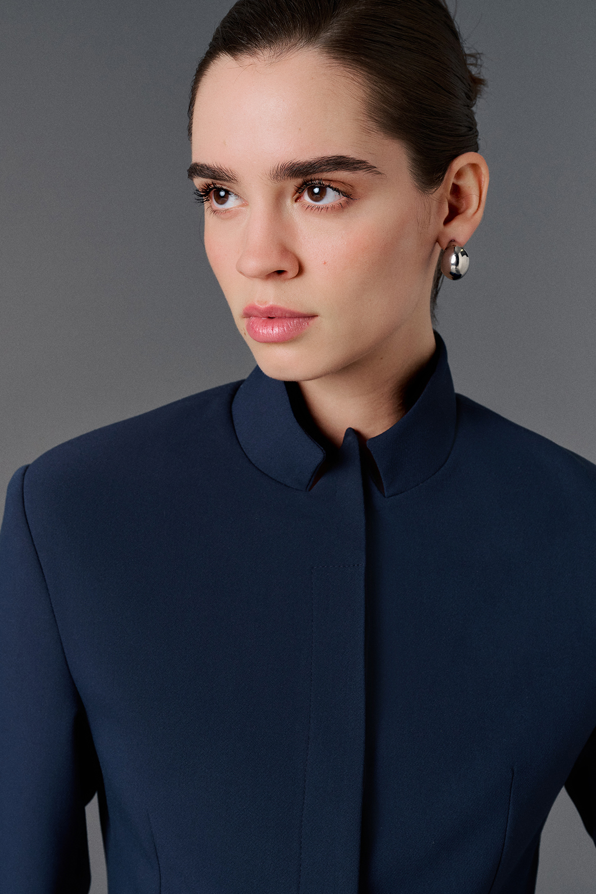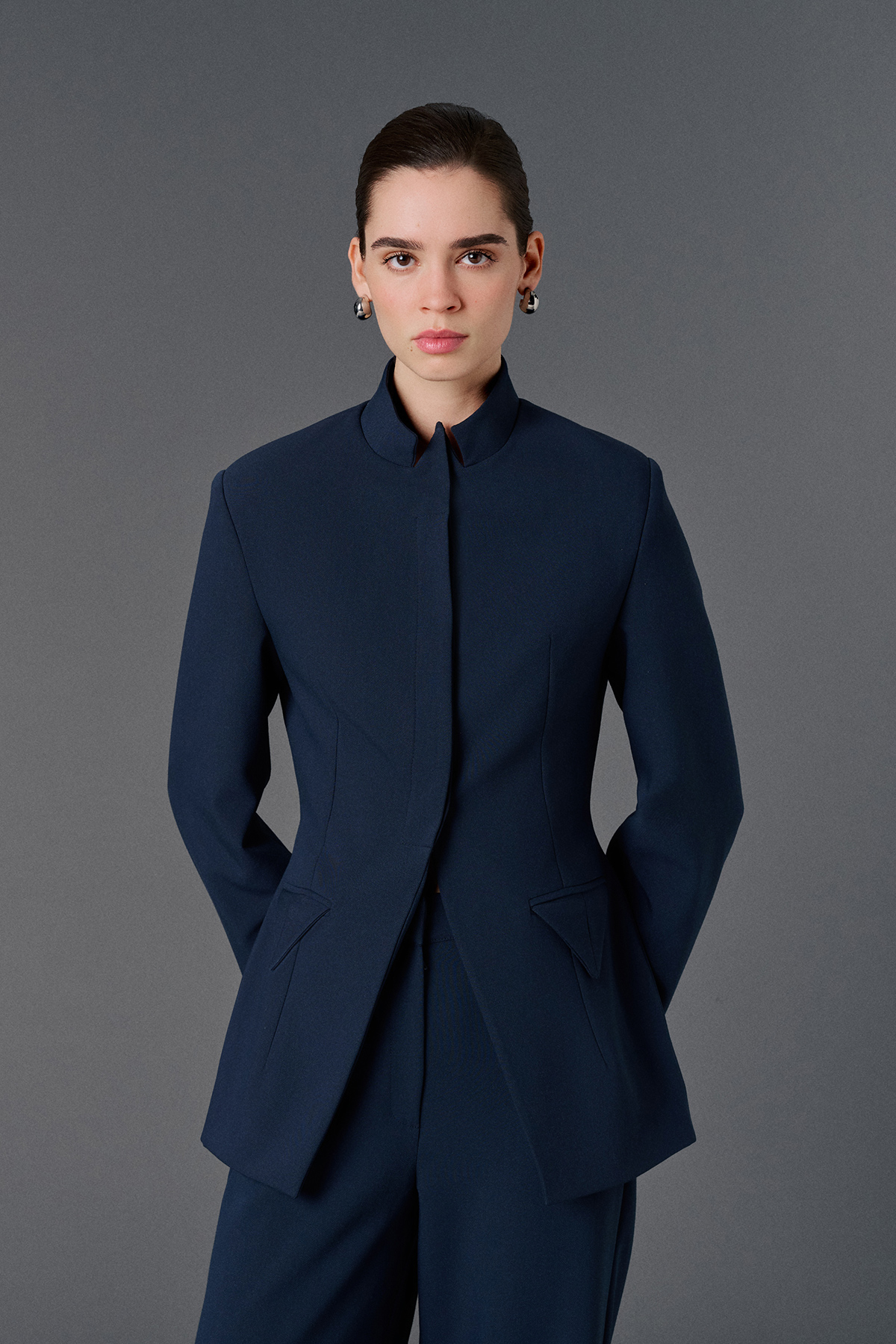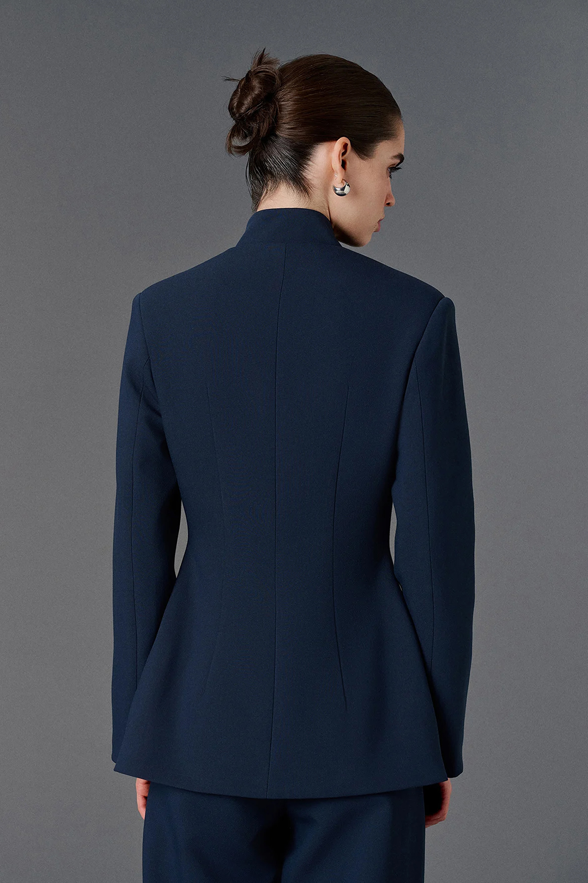 Vatkalı, iki adet işlevsiz cep aksesuarlı, gizli patlı, düğmeli, uzun kollu, astarlı,vücuda oturan blazer ceket