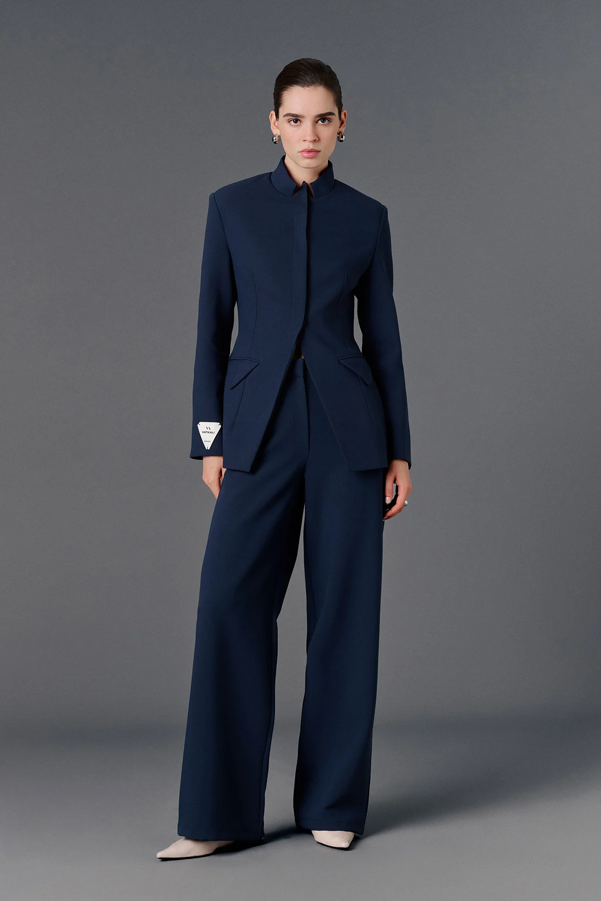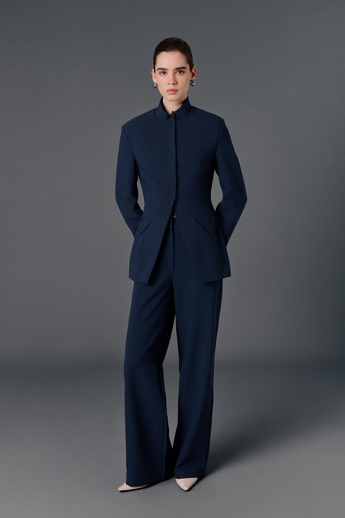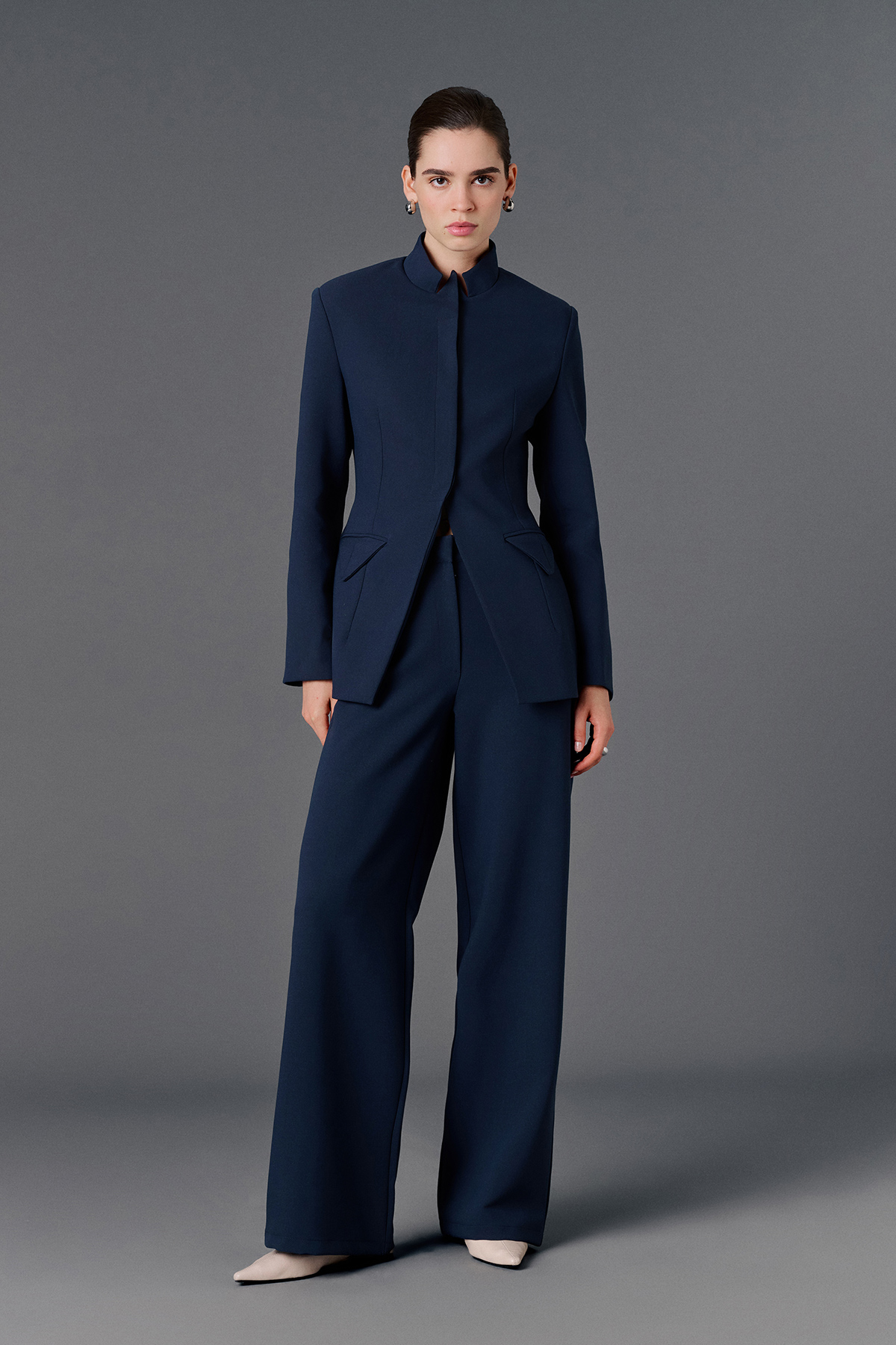 Vatkalı, iki adet işlevsiz cep aksesuarlı, gizli patlı, düğmeli, uzun kollu, astarlı,vücuda oturan blazer ceket