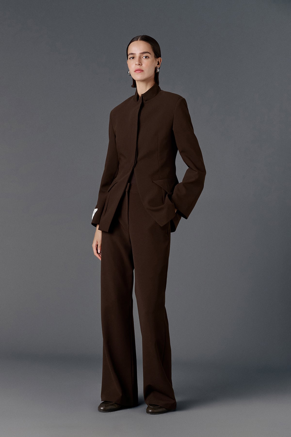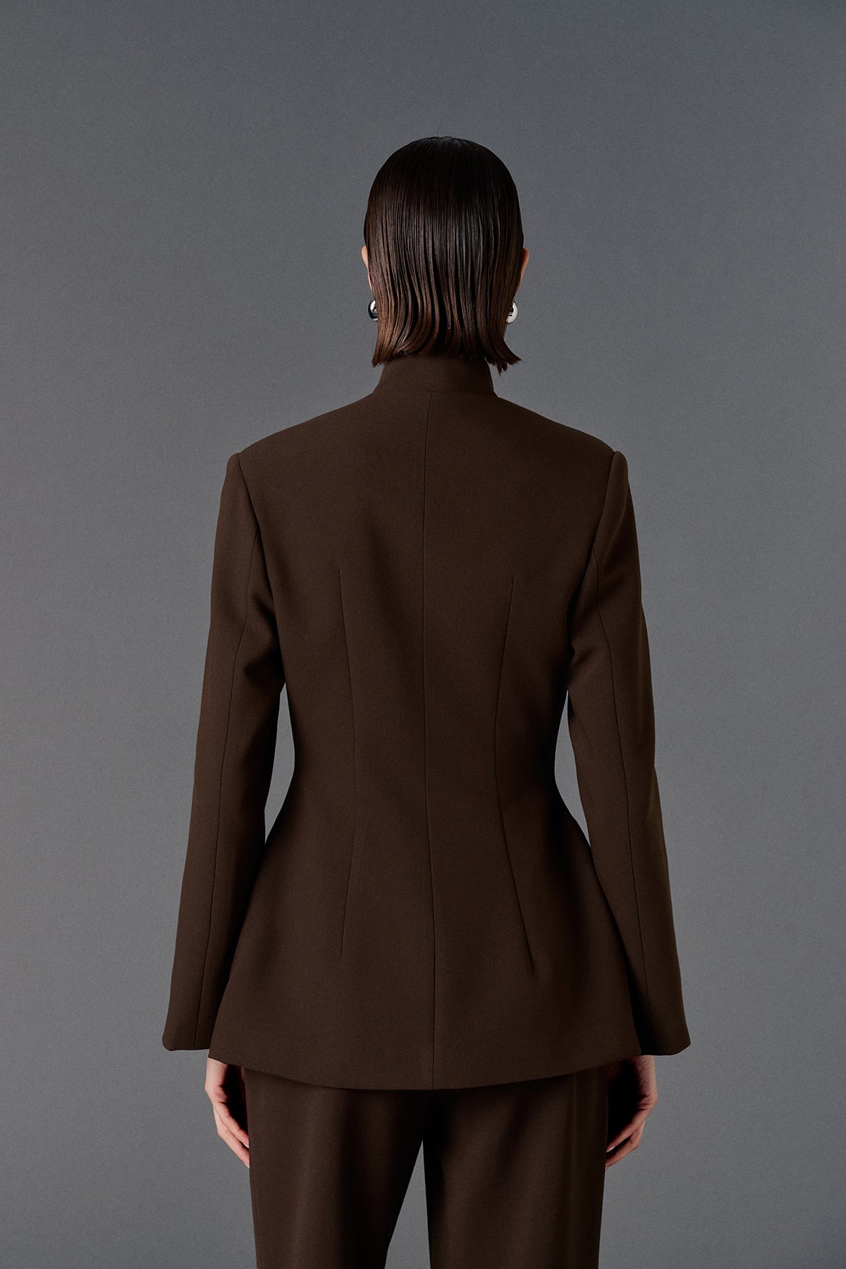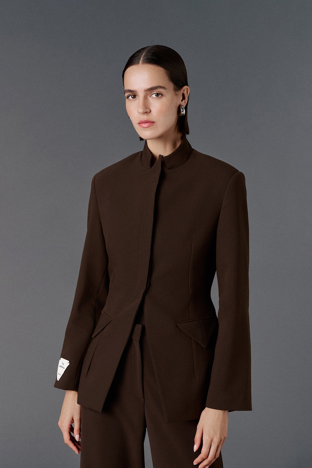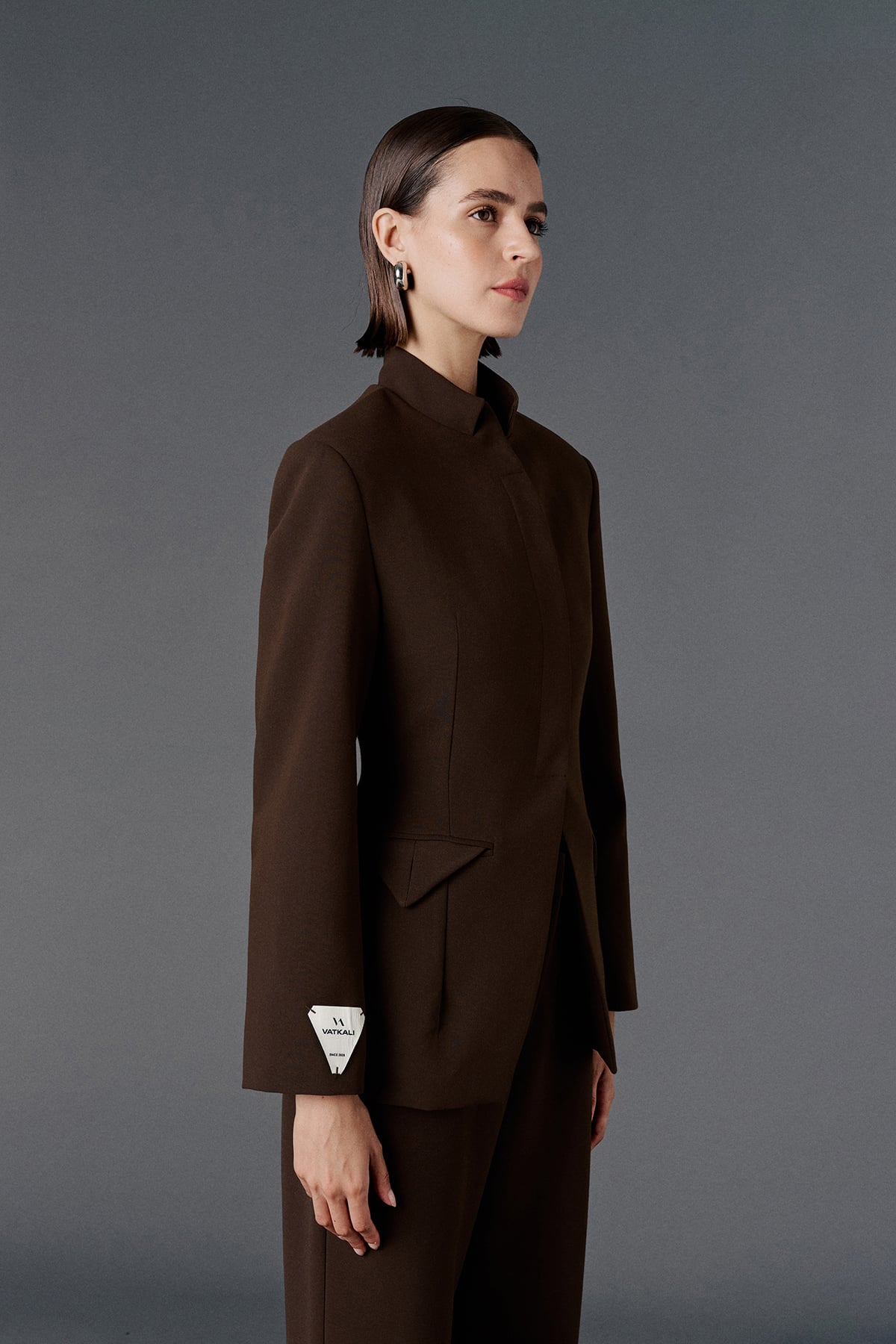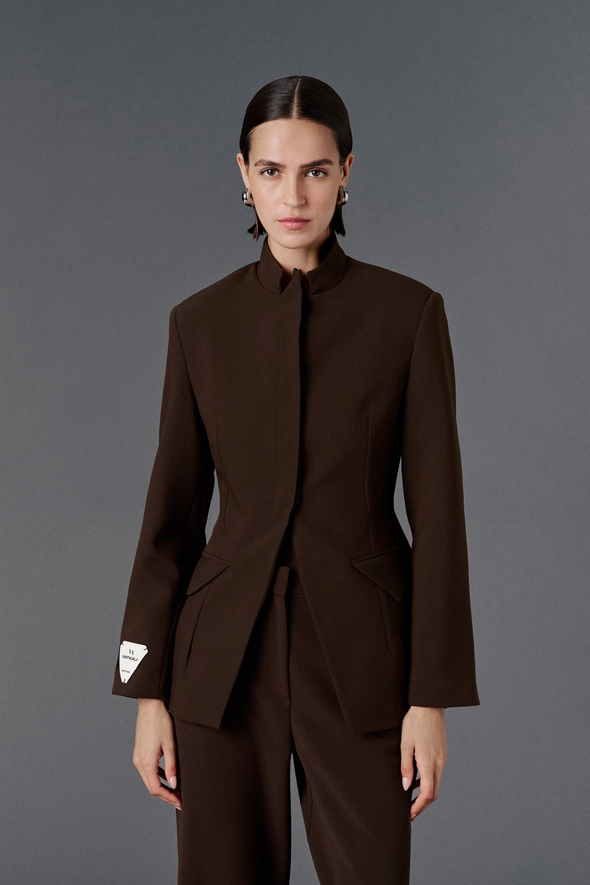 Vatkalı, iki adet işlevsiz cep aksesuarlı, gizli patlı, düğmeli, uzun kollu, astarlı,vücuda oturan blazer ceket