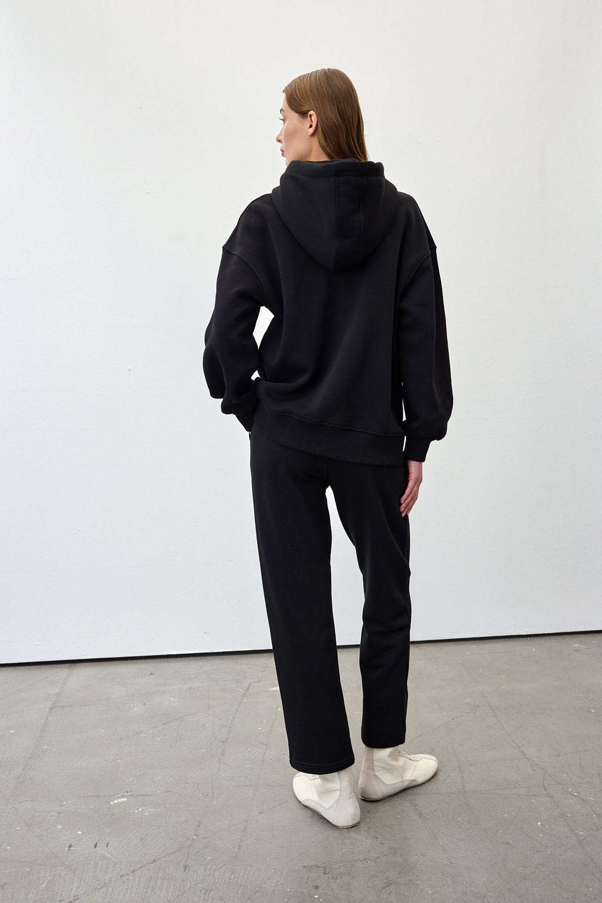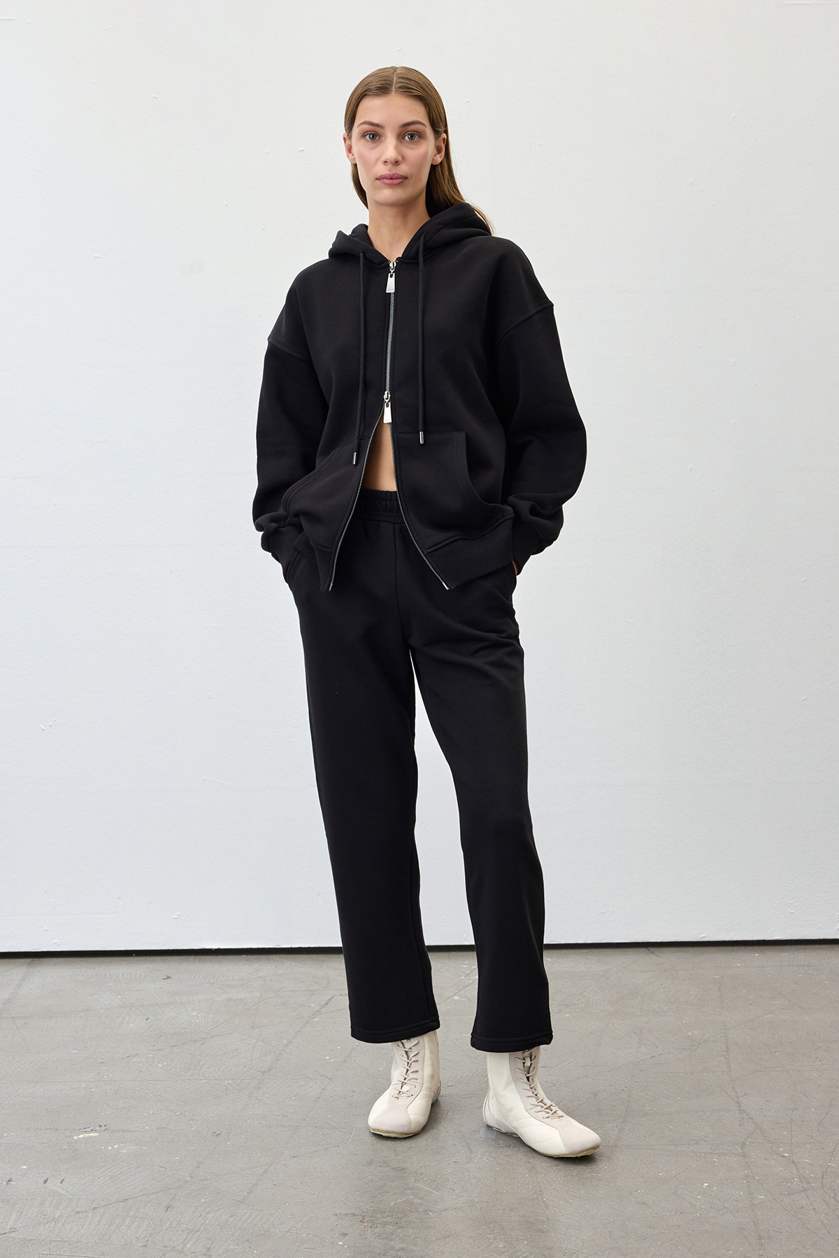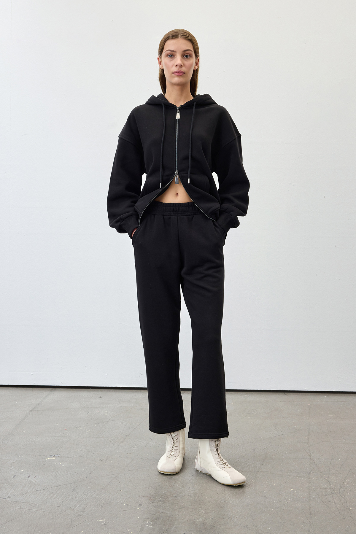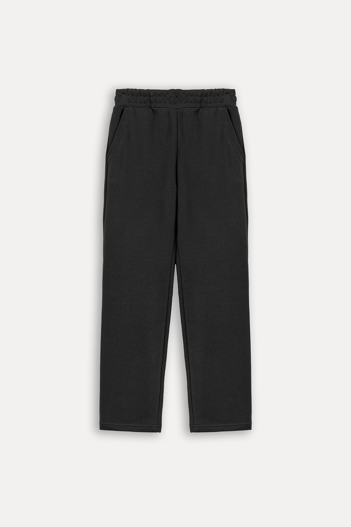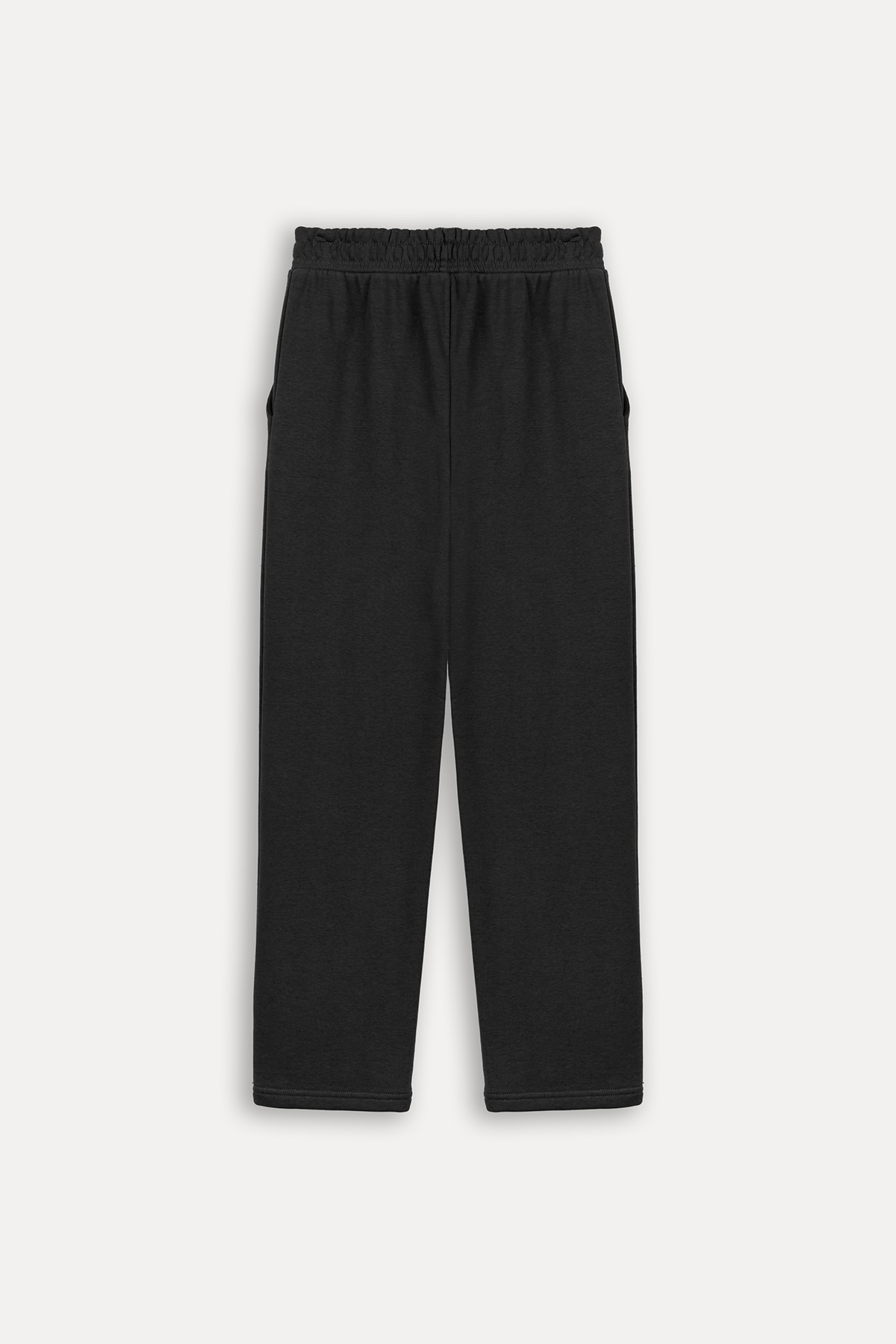 Yüksek bel, beli lastikli, yandan 2 cepli, tam kalıp jogger pantolon.