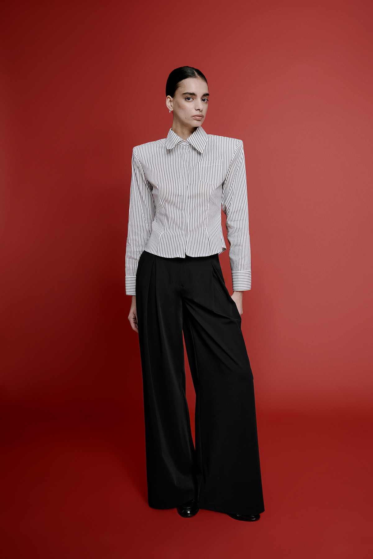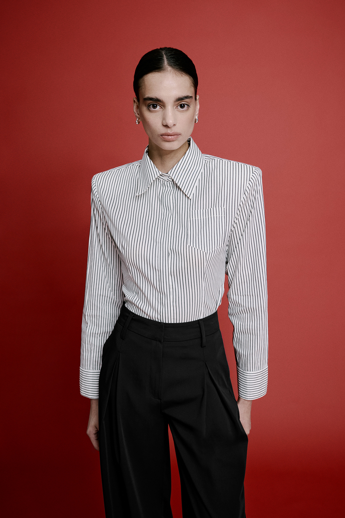 Regular Çizgili Gömlek, zamansız çizgi deseni ve vücuda oturan kesimiyle modern bir kadın gömlek modelidir. Gizli pat kapama detayı sayesinde daha temiz ve minimal bir görünüm sunarken, çift düğmeli manşet tasarımı şıklığı tamamlar. Ofis kombinlerinden günlük şehir stiline kadar rahatlıkla uyarlanabilen bu çizgili regular gömlek, hem klasik hem modern bir duruş arayanlar için ideal bir seçenektir.