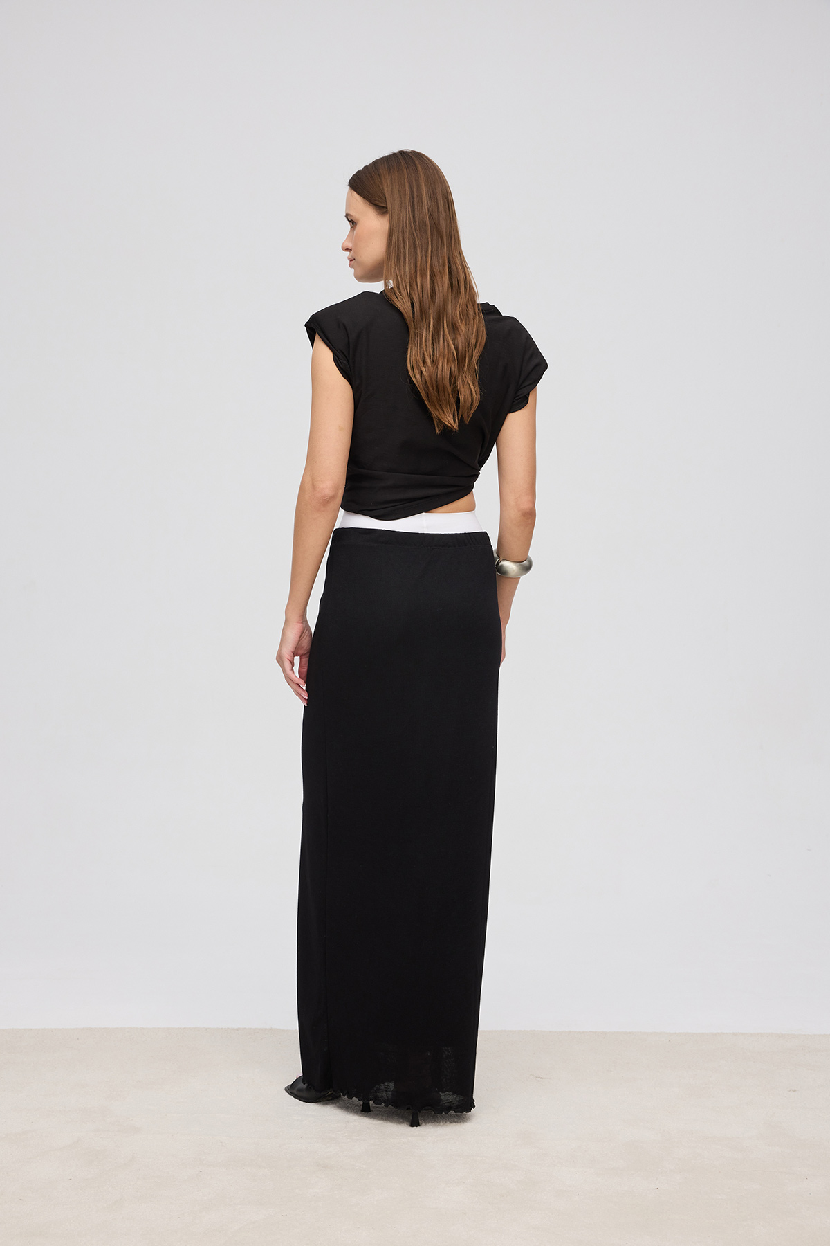 Beli lastikli , Astarlı , Esnek , Tam kalıp , Maxi boy ,Kadın relaxed maxi etek