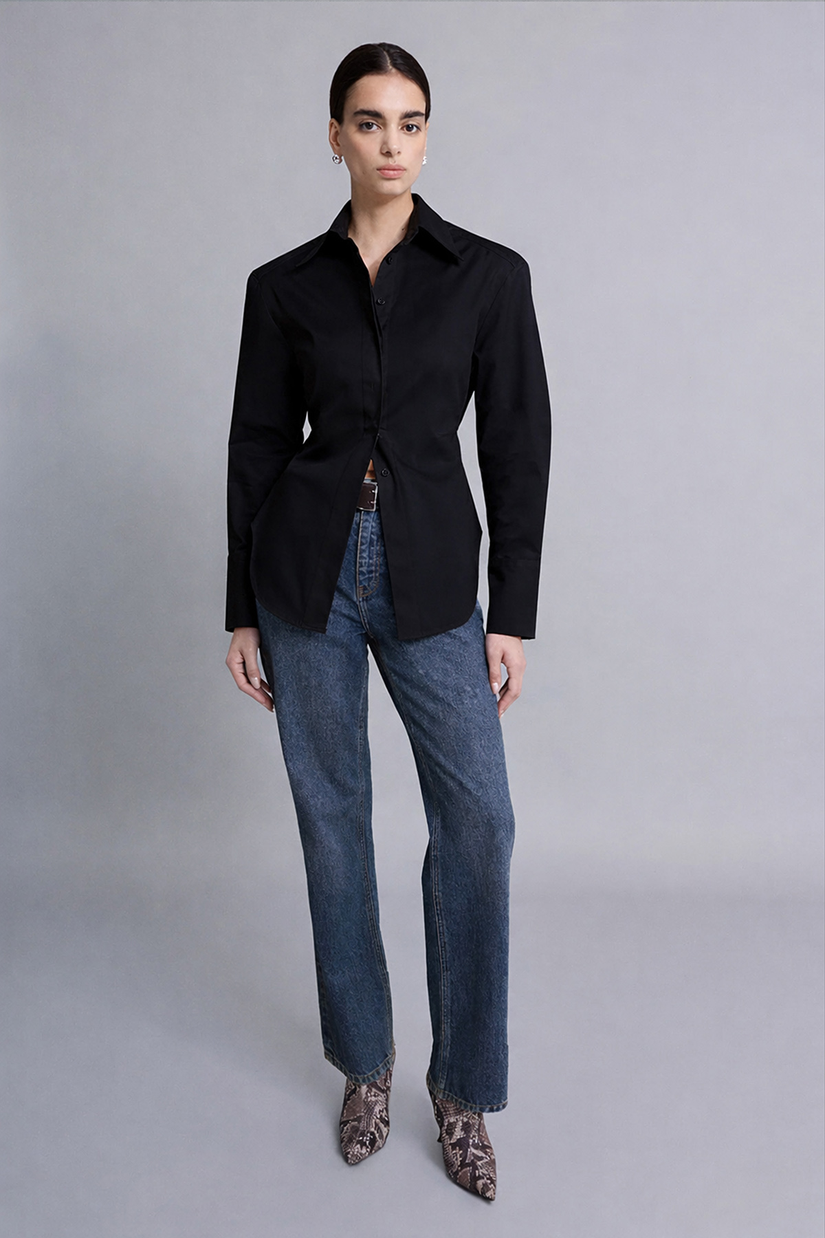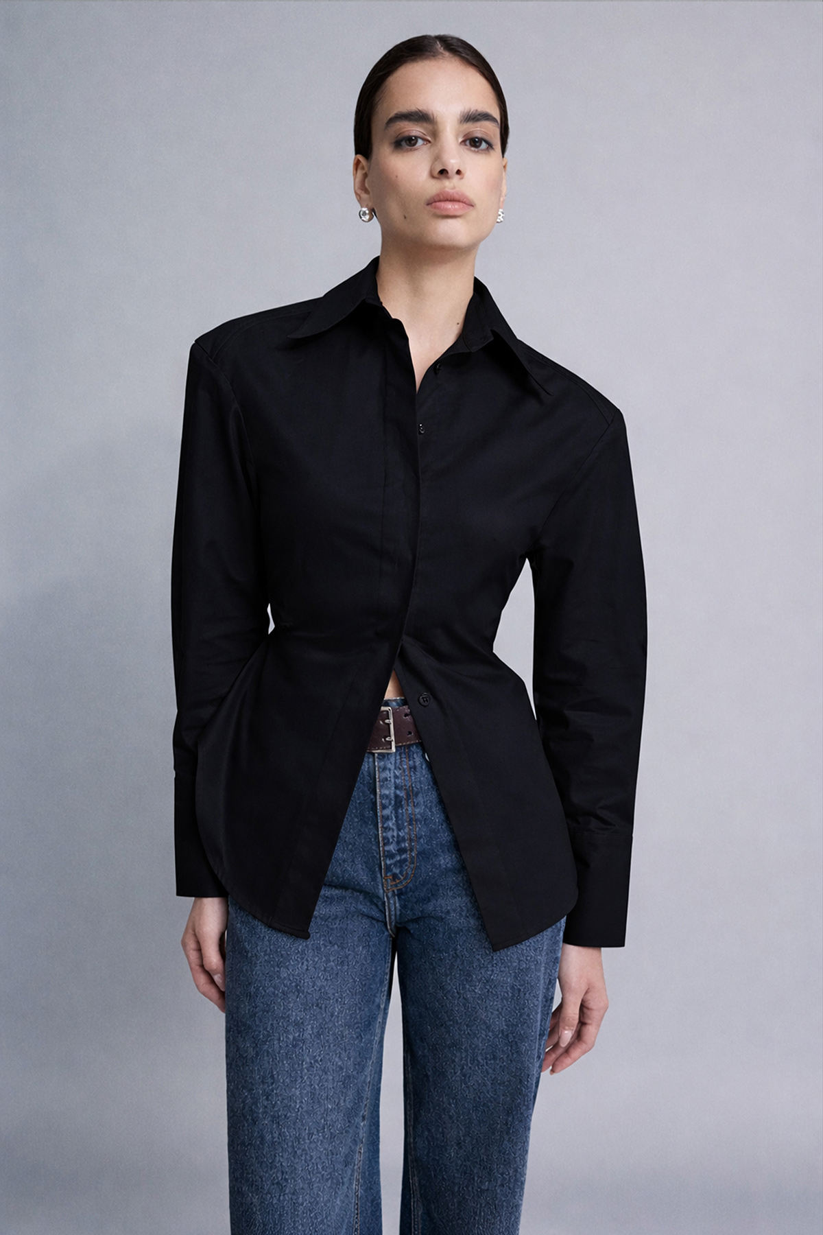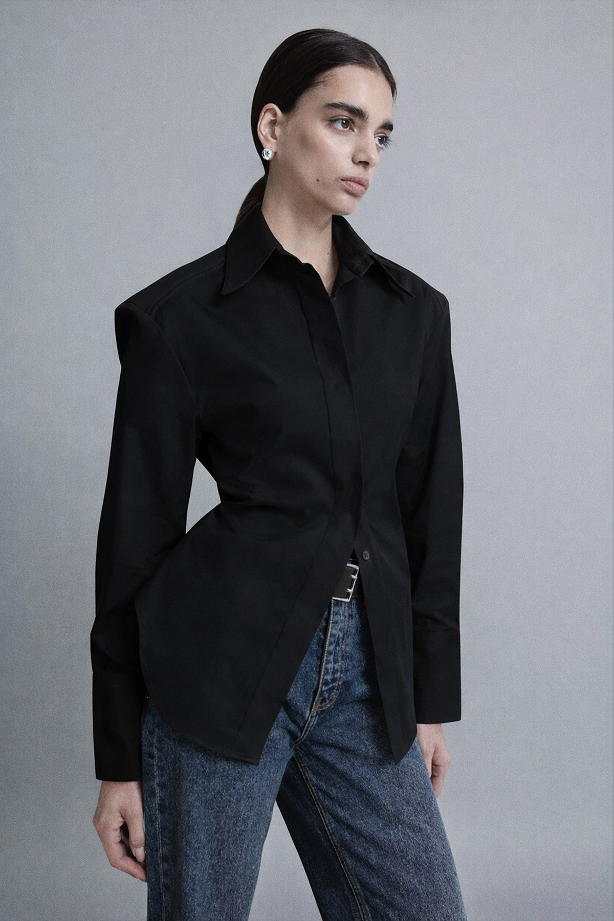 Strong Shoulder Vücuda Oturan Gömlek, belirgin omuz formu ve fitted kesimiyle silueti güçlü ve net gösterir. Omuz hattındaki yapı üst bedene karakter kazandırırken, vücuda oturan kalıbı daha keskin ve iddialı bir görünüm yaratır. Ofis stilinden gece kombinlerine kadar kolayca uyarlanabilen bu strong shoulder gömlek, sade parçalarla bile etkisini hissettiren modern bir gardırop yatırımıdır.
