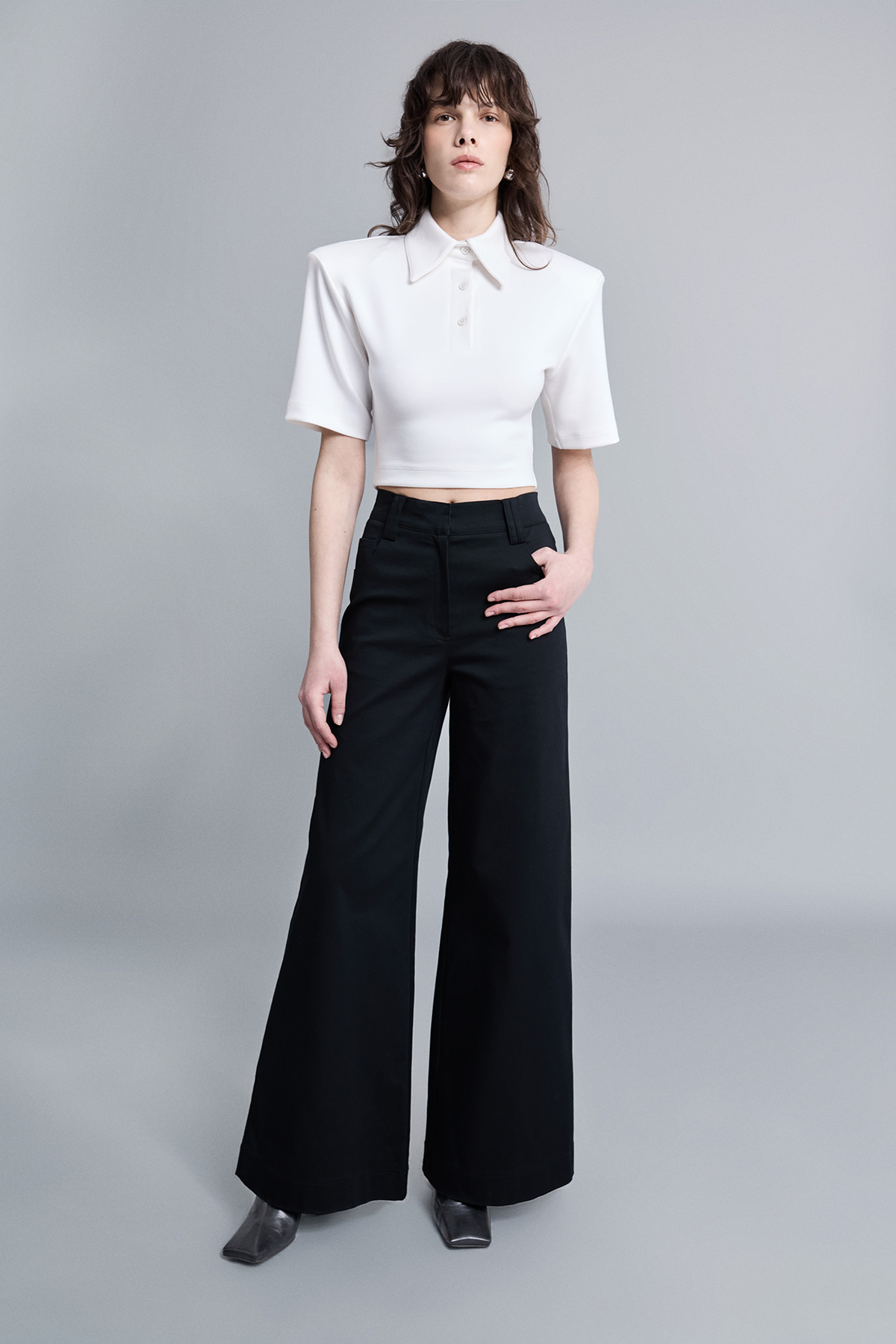 Tailored Wide Leg Pantolon, yüksek bel ve geniş paça kesimiyle güçlü bir siluet sunarken, akışkan yapısı sayesinde zahmetsiz bir şıklık yaratır. Bel hattını net şekilde vurgulayan formu ve dengeli duruşu ile hem ofis kombinlerinde hem şehir stilinde rahatlıkla tercih edilebilen bu wide leg kadın pantolon, modern ve iddialı bir görünüm arayanlar için zamansız bir seçenektir.
