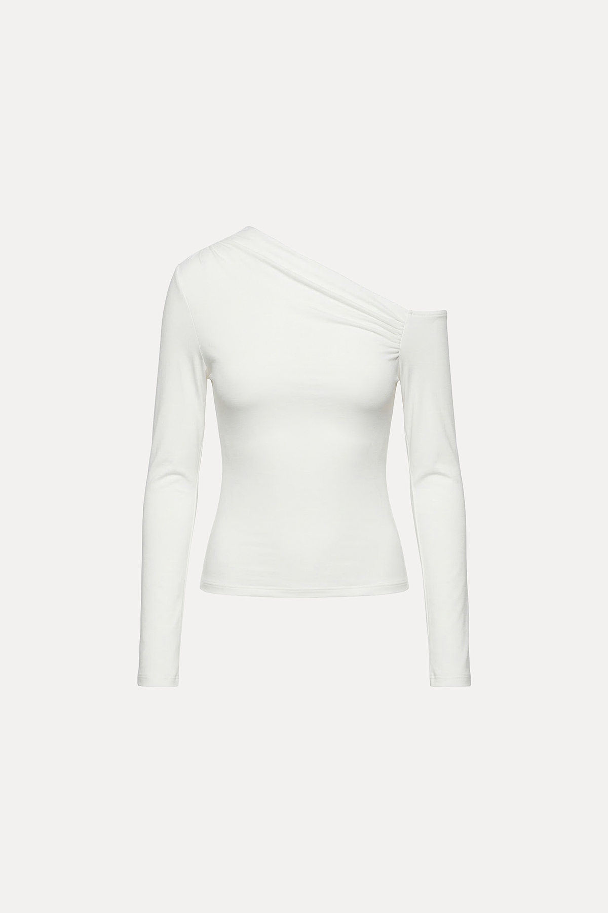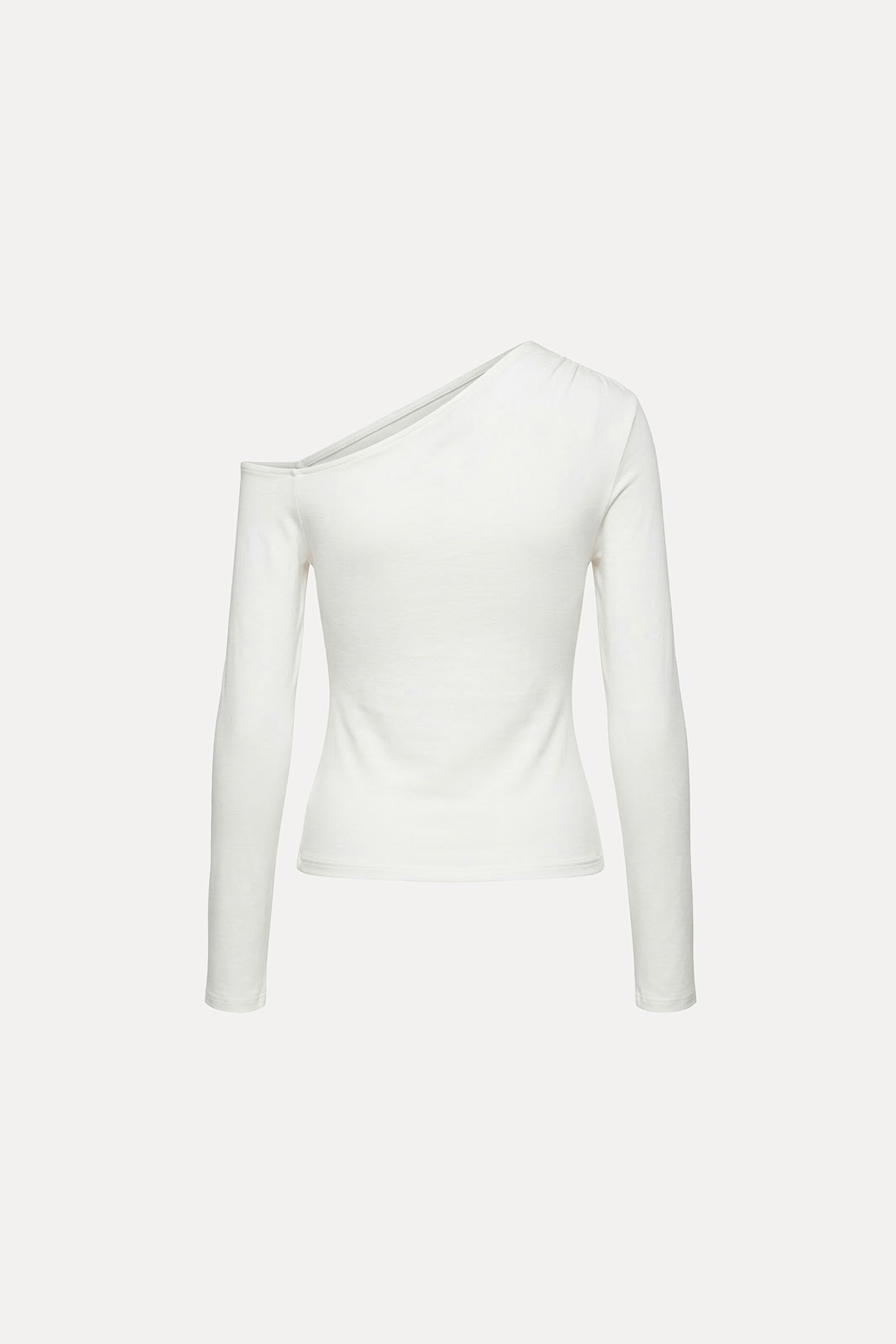 Asimetrik yaka, esnek,tam kalıp, uzun kollu asimetrik top