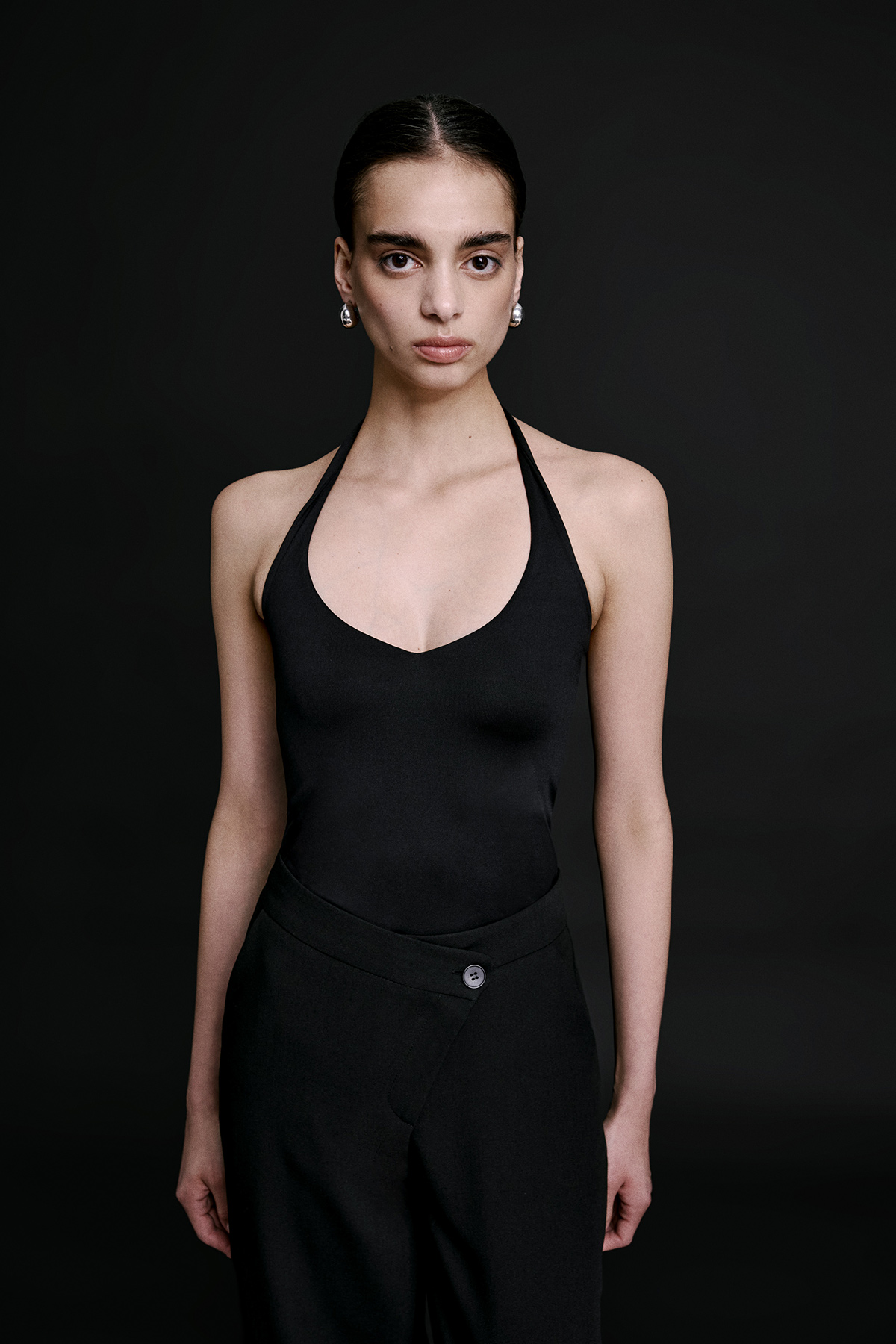 V yaka detaylı, vücuda oturan kesimiyle günlük kullanım için ideal, sırt dekolteli bodysuit.