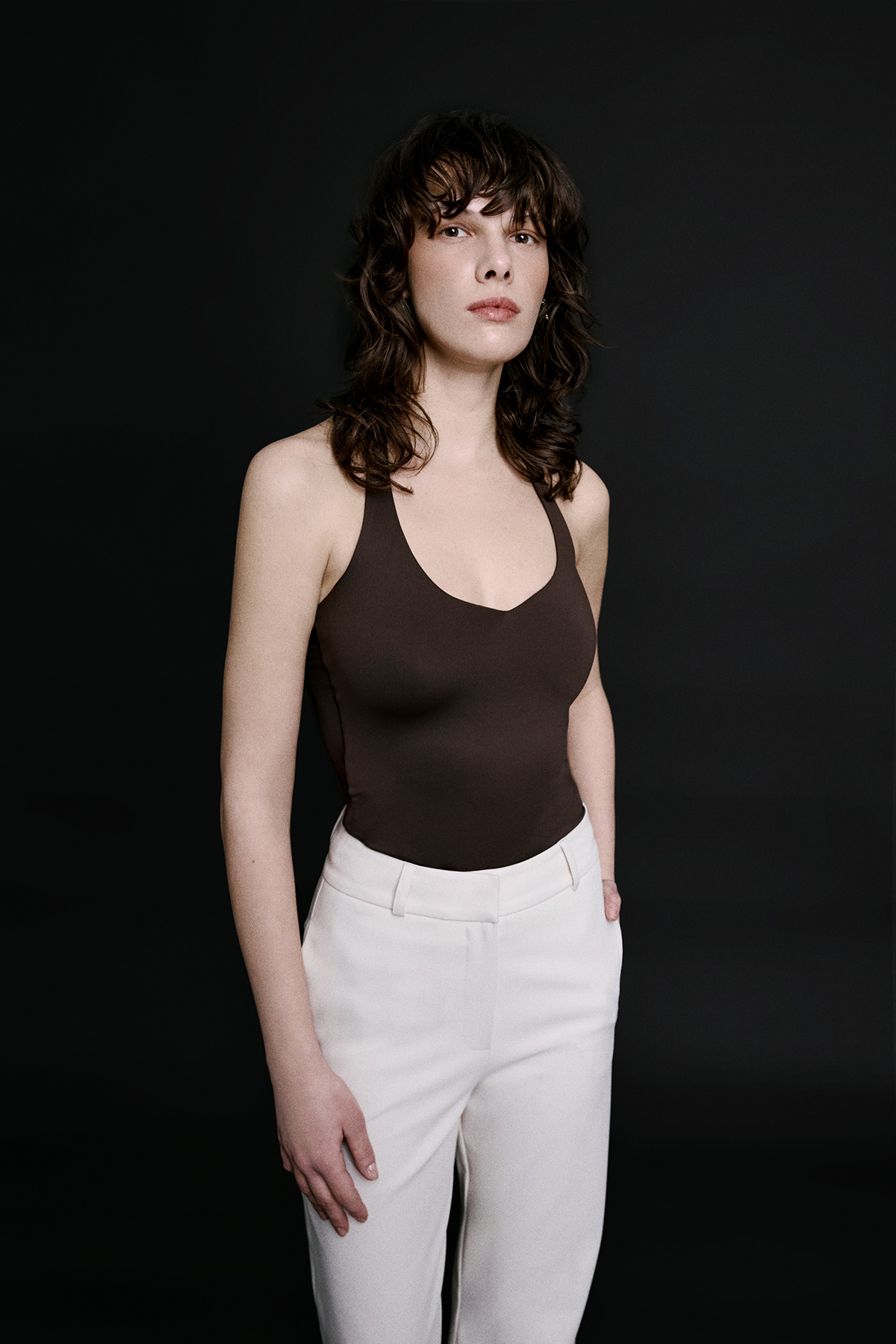 V yaka detaylı, vücuda oturan kesimiyle günlük kullanım için ideal, sırt dekolteli bodysuit.