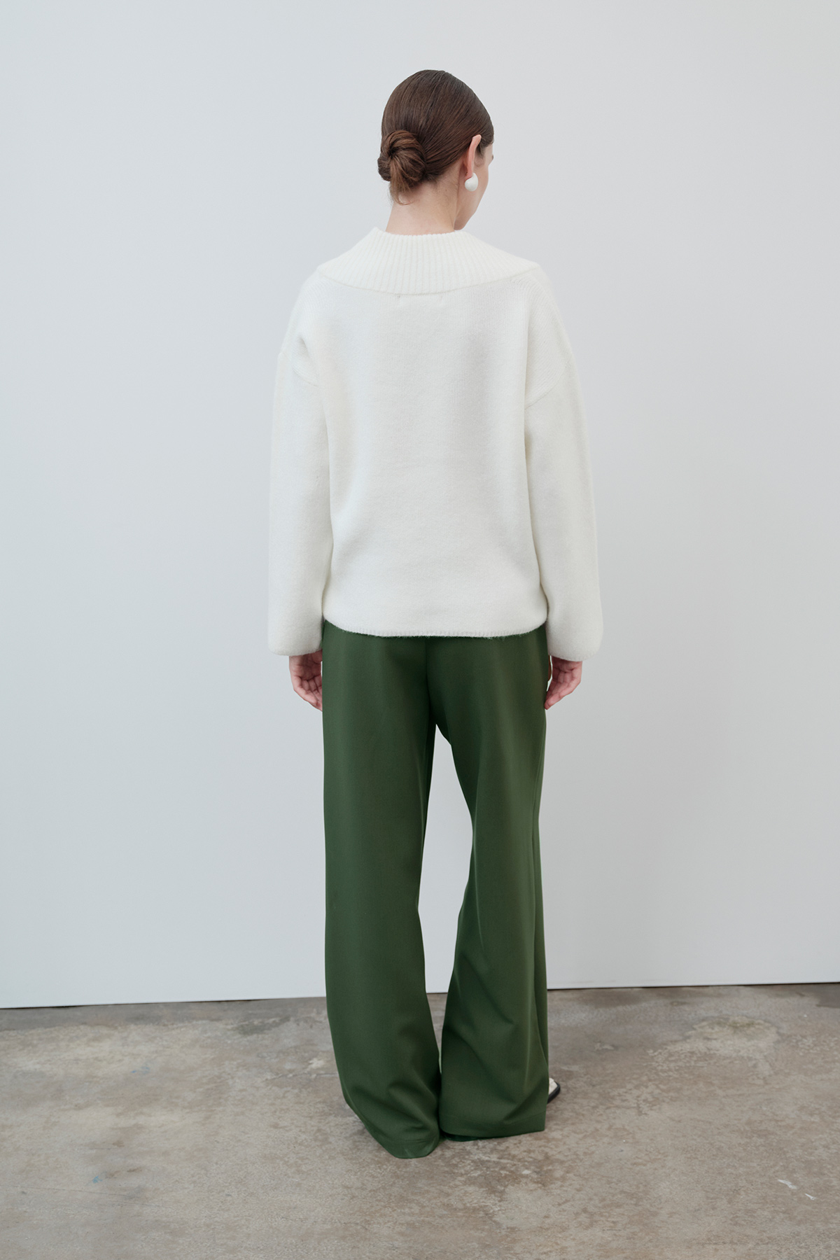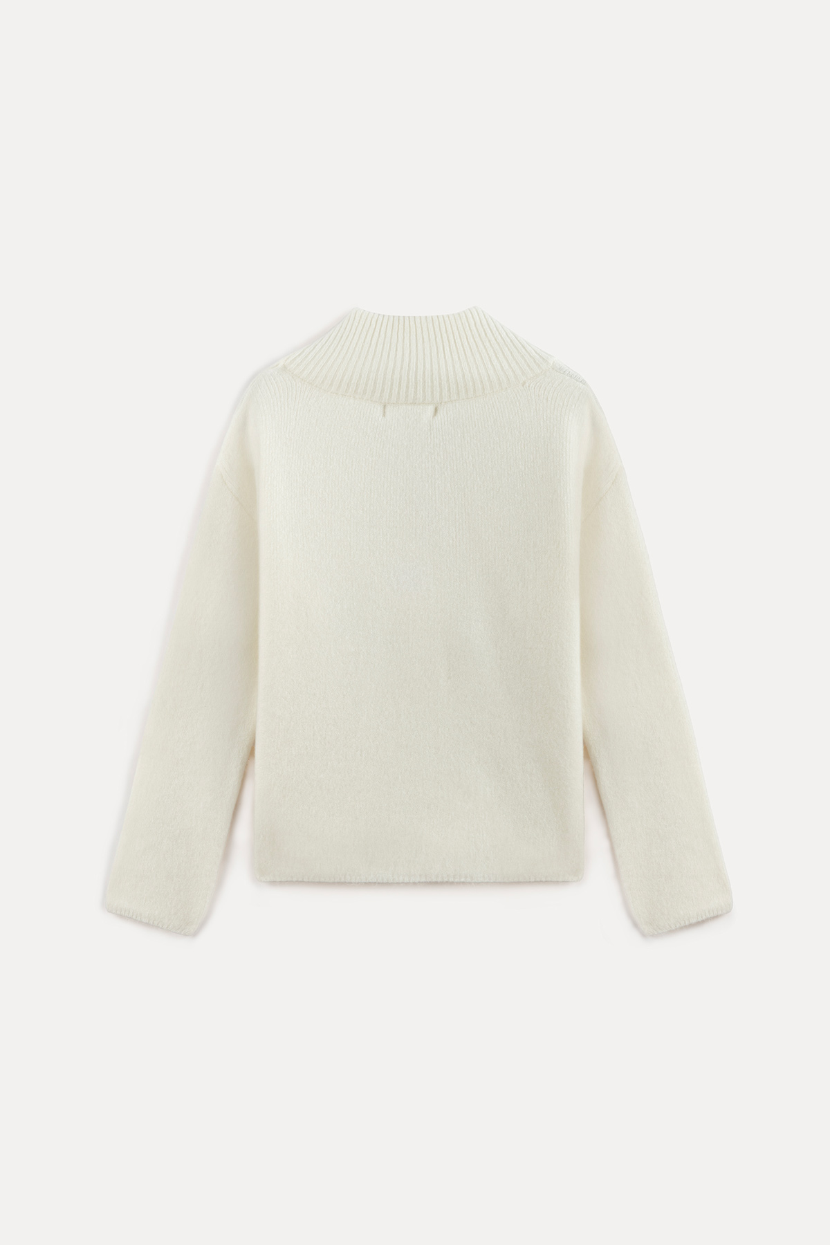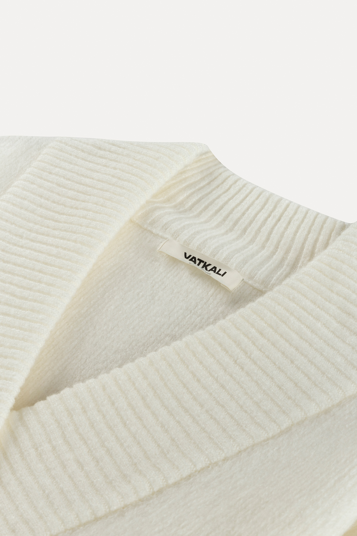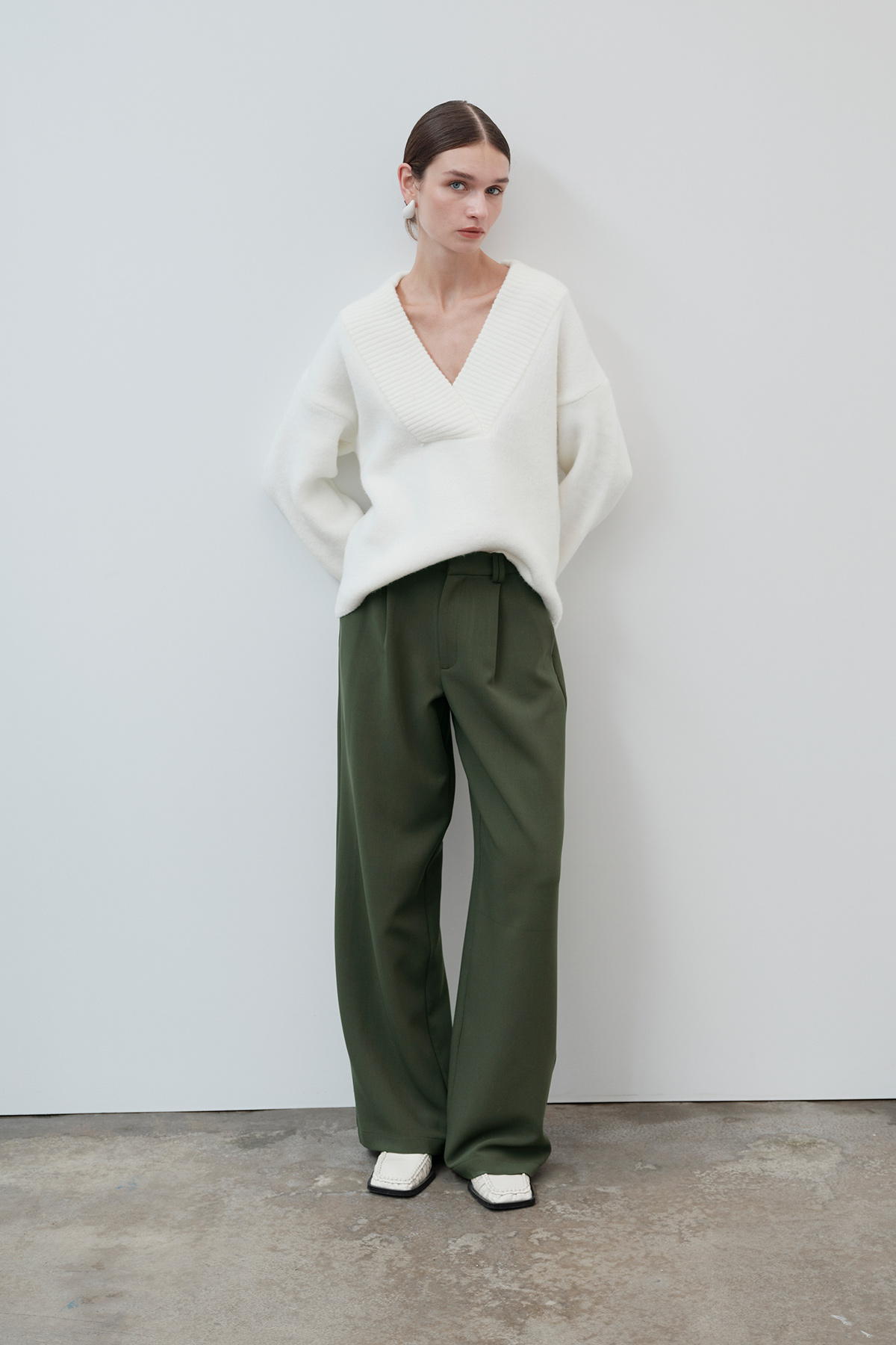 Derin v yaka, kalın örgü kumaşlı, yumuşak dokulu, kadın kazak
