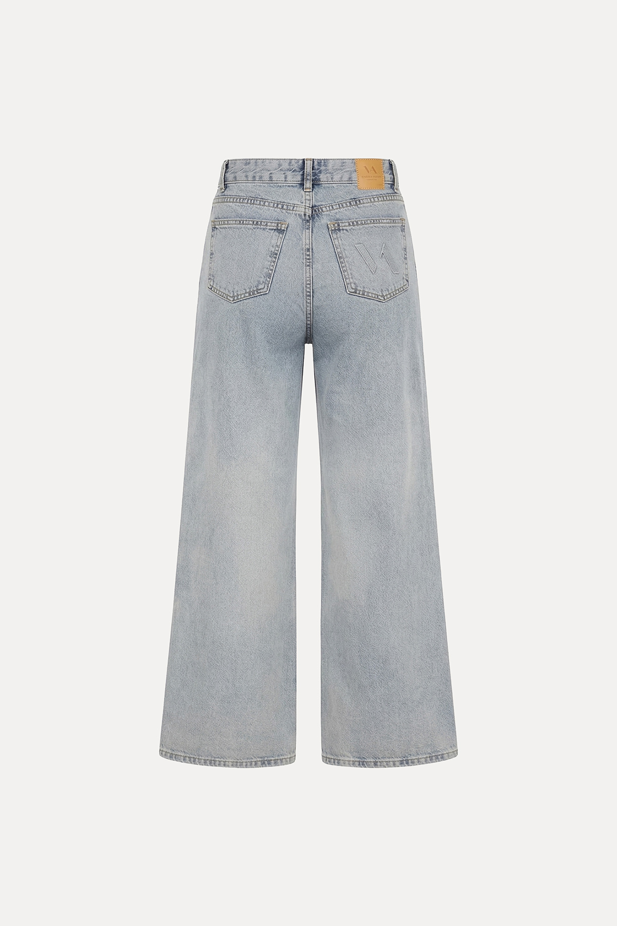 Yüksek bel, düğmeli ve fermuarlı, bol paça, 5 cepli, tam kalıp jean.