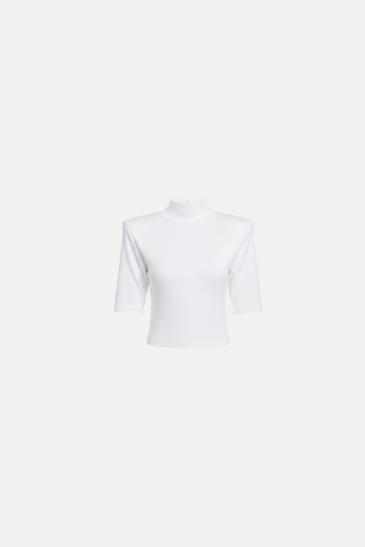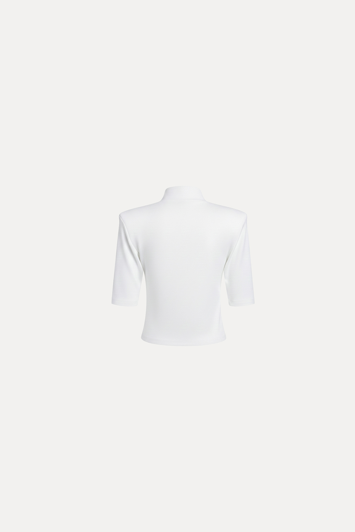 Dik yaka, esnek kumaş, kısa kollu, vatkalı, regular kalıp bluz.