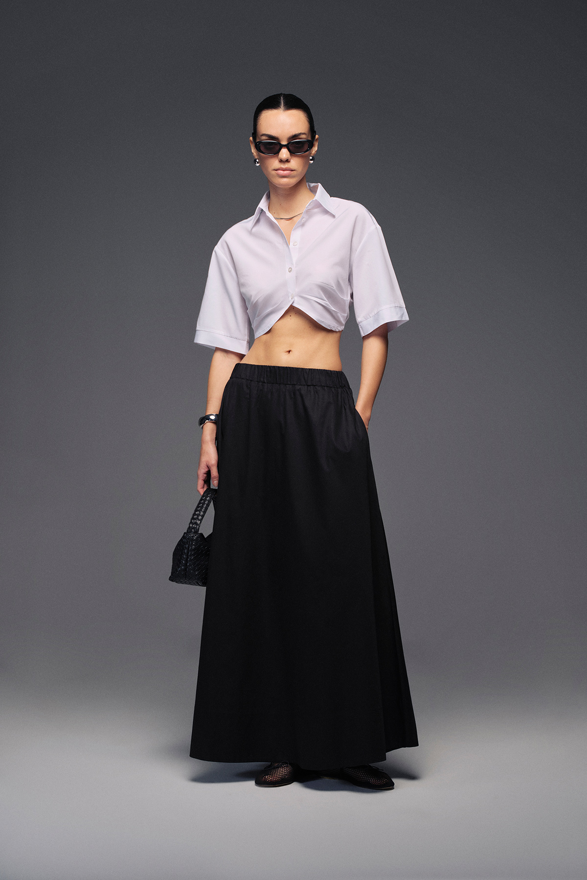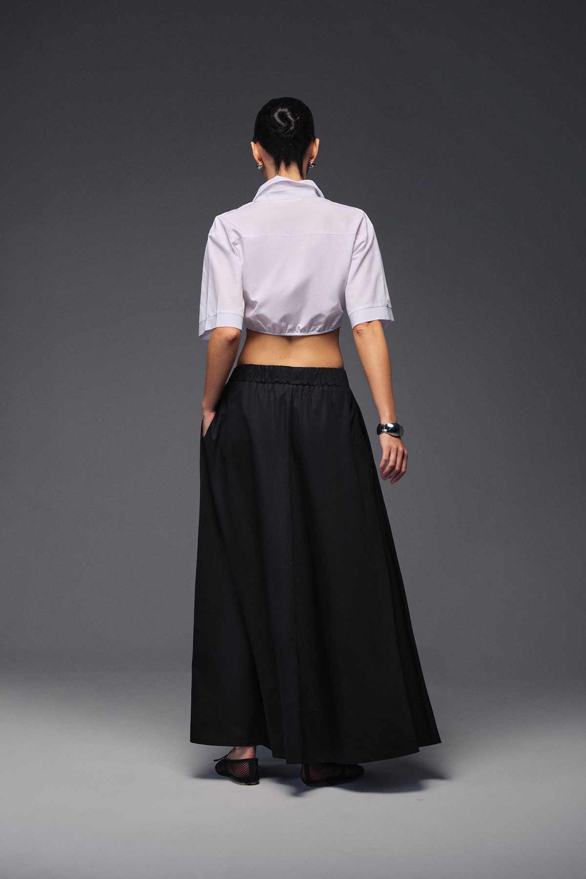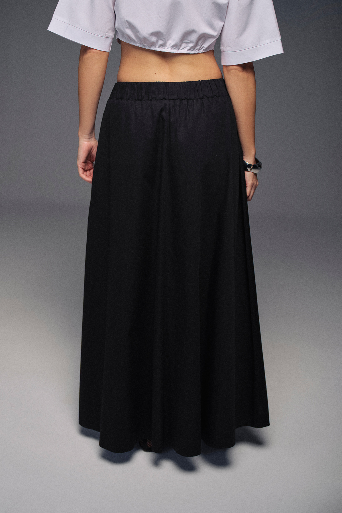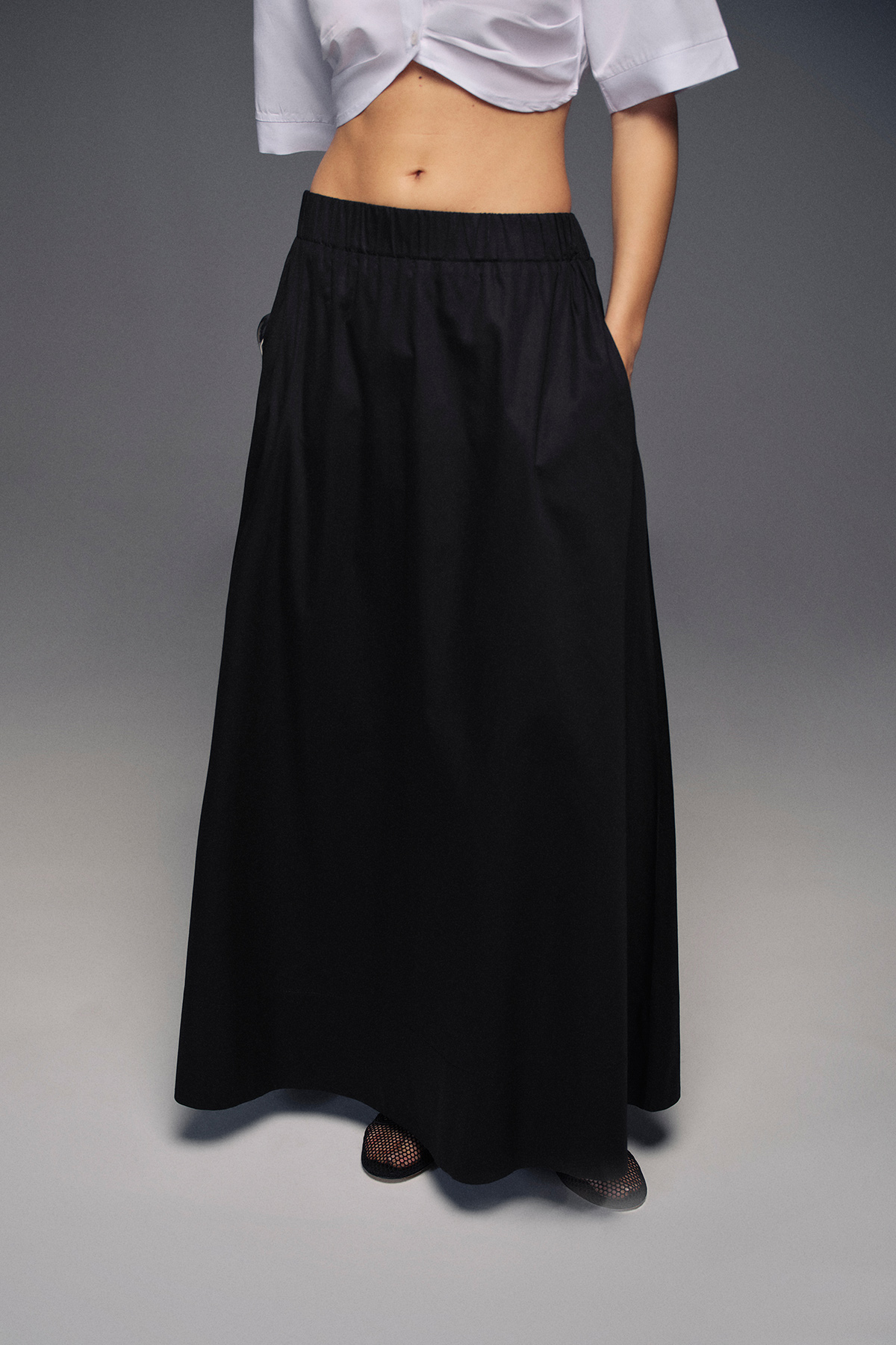 Beli lastikli, maxi boy, astarlı, yanlardan cepli,volanlı maxi etek.