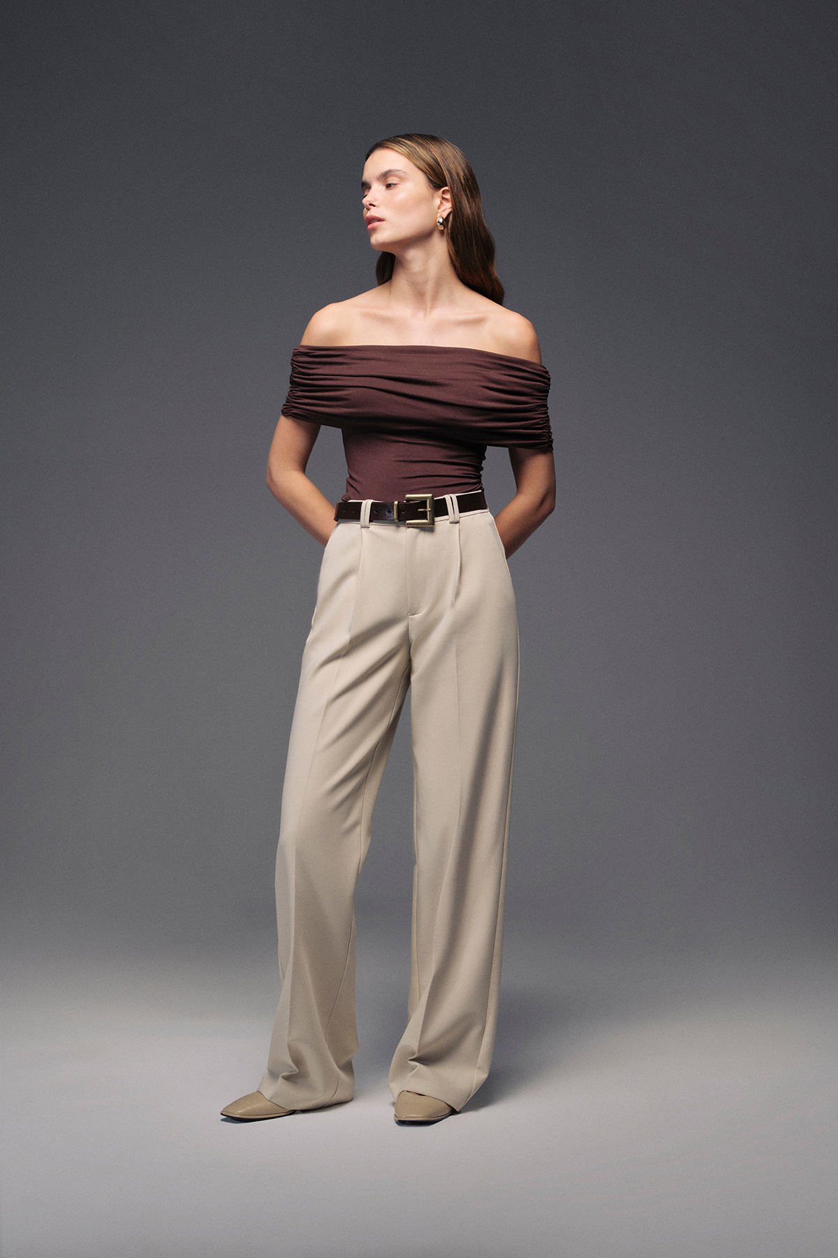 Yüksek bel, pensli,kemer detaylı, astarsız, 2 ön cepli, kopçalı ve fermuarlı, tam kalıp pantolon