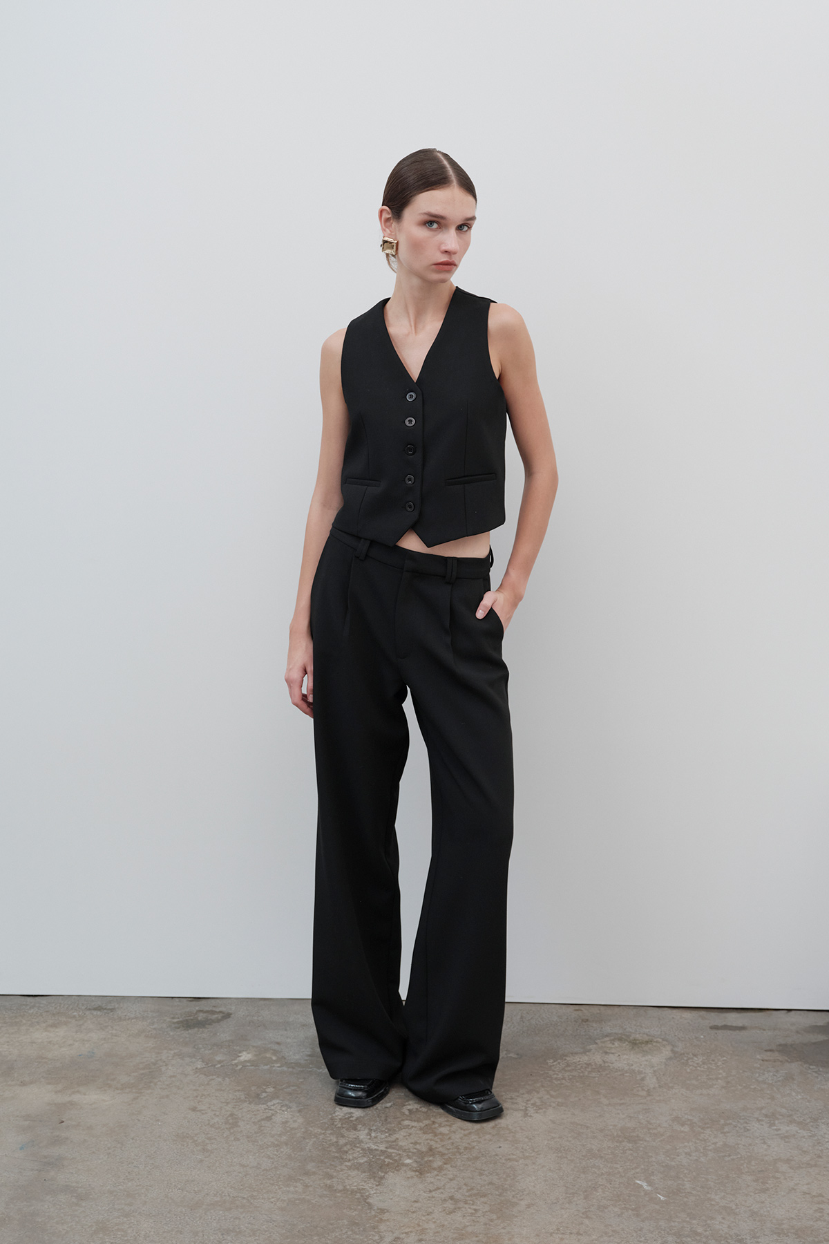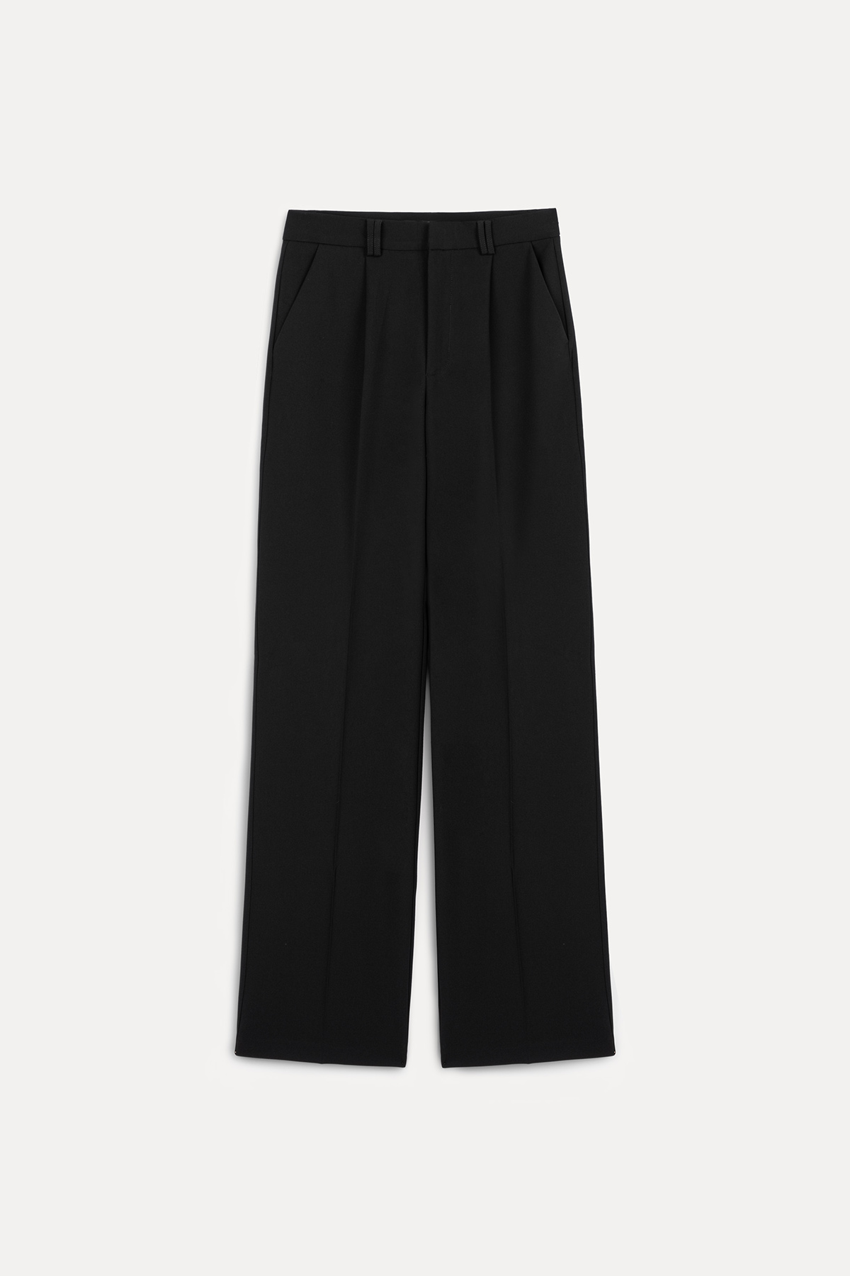 Yüksek bel, pensli,kemer detaylı, astarsız, 2 ön cepli, kopçalı ve fermuarlı, tam kalıp pantolon