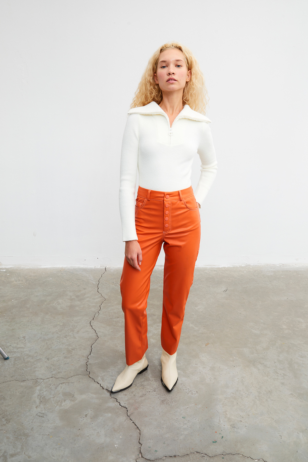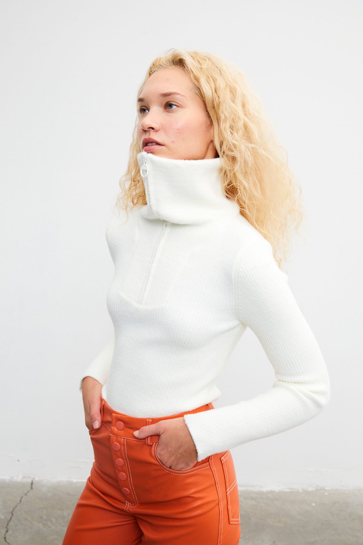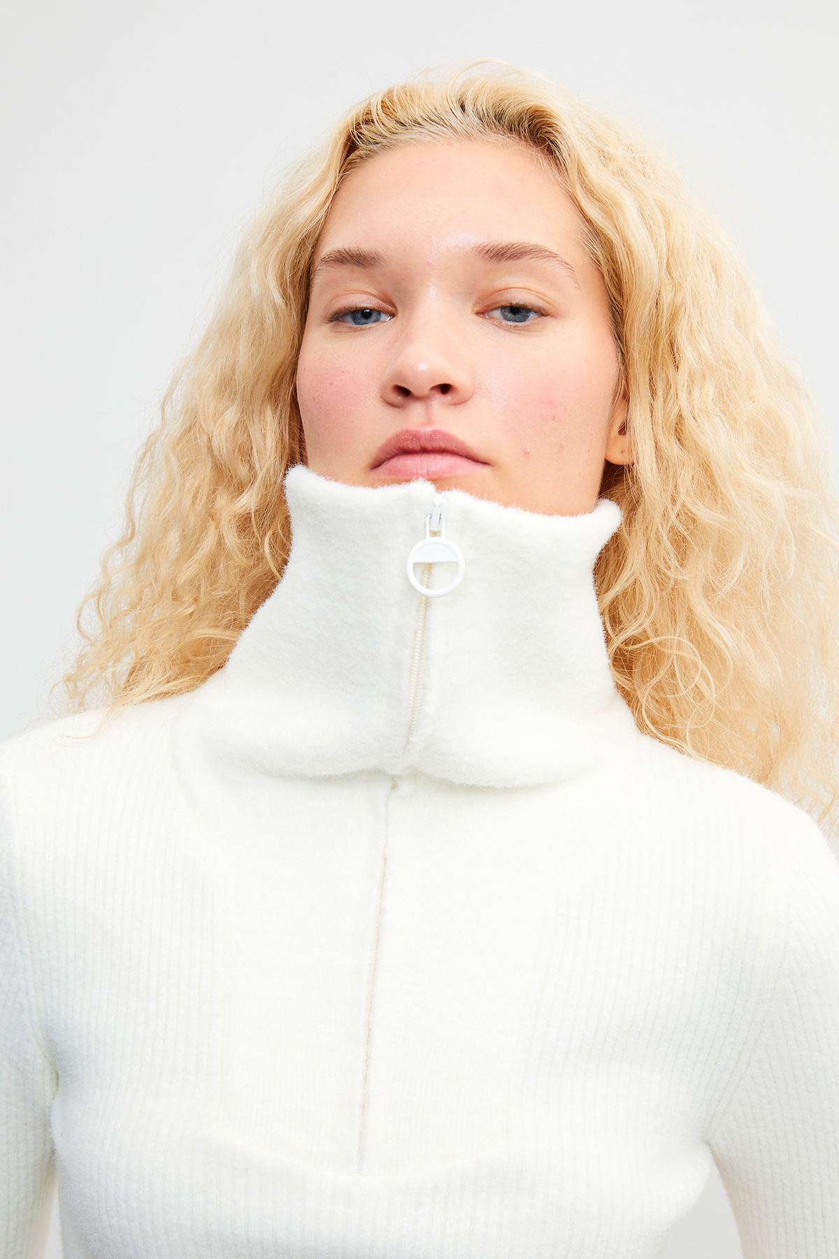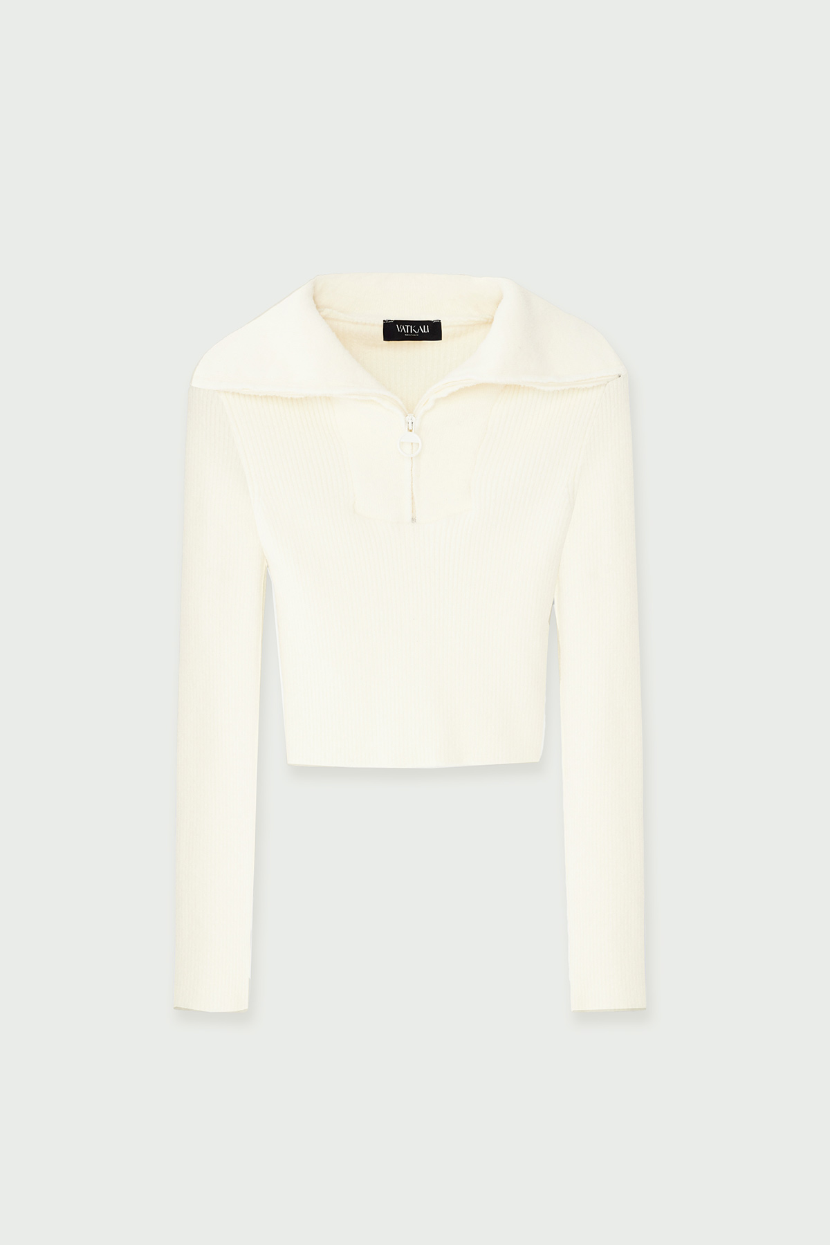Yakası fermuarlı, tüylü, dik yaka, fitilli crop kazak