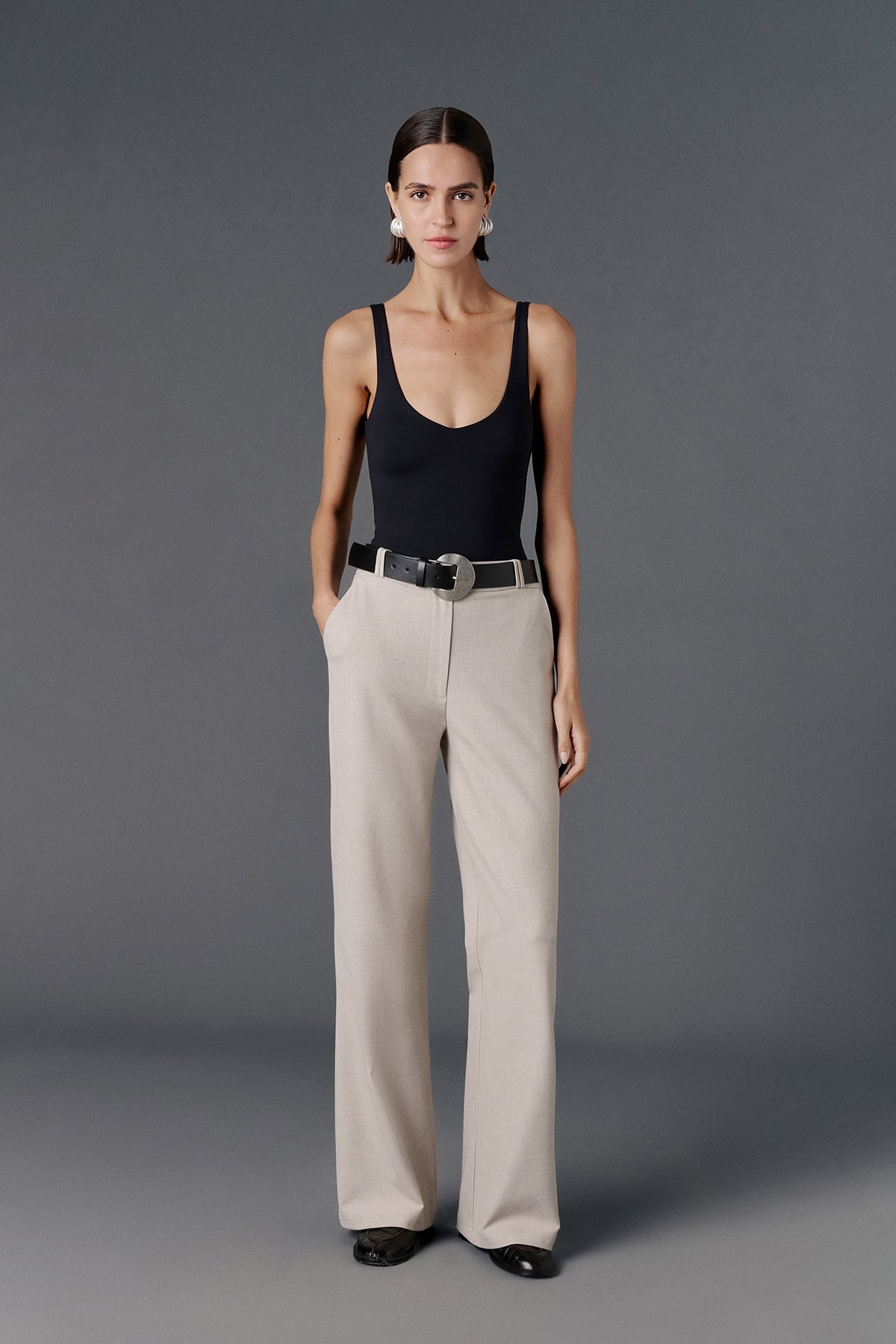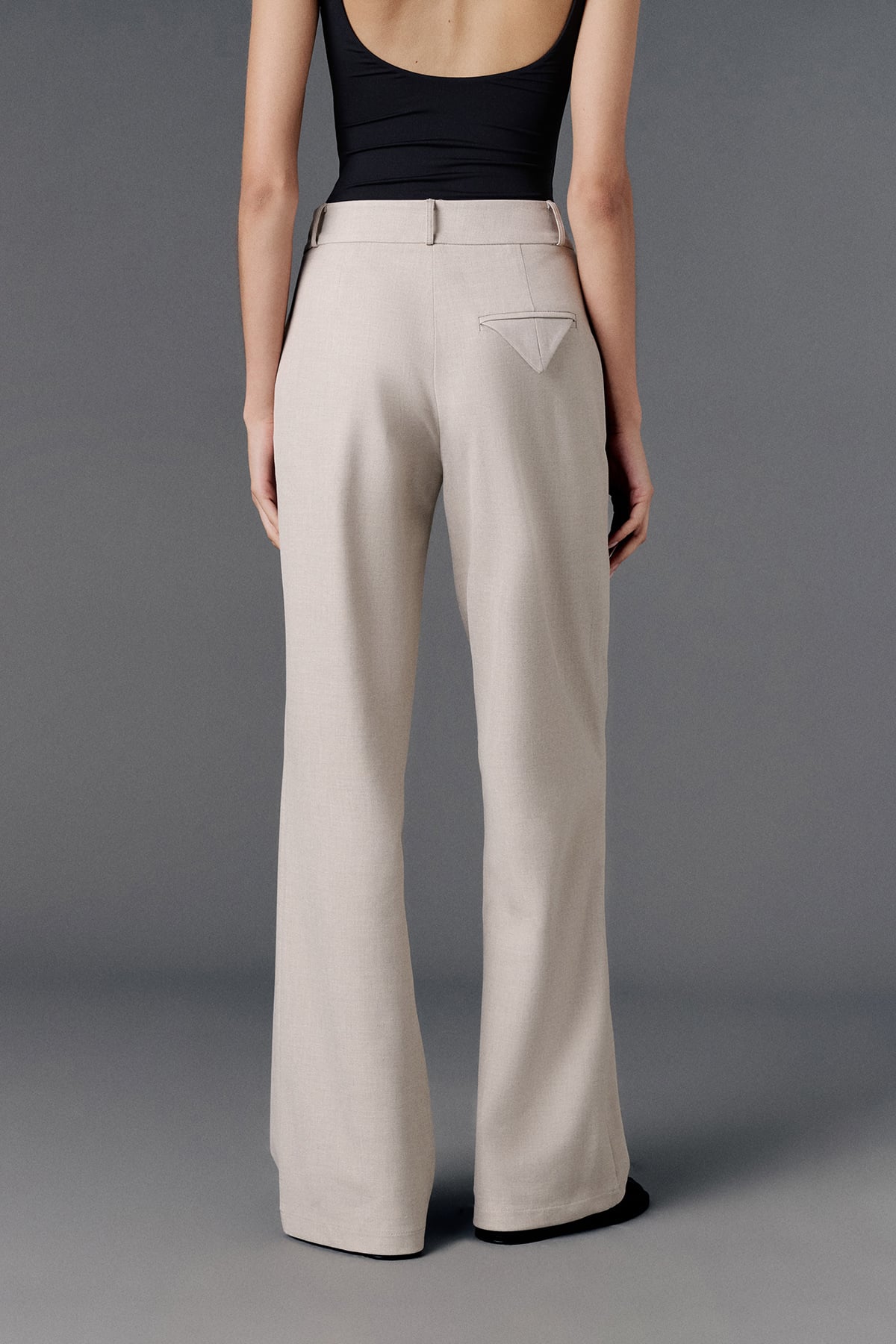 Yüksek bel, straight fit, düğme ve fermuar kapamalı, çift köprü detaylı, arkası mendil cep detaylı, kumaş pantolon.