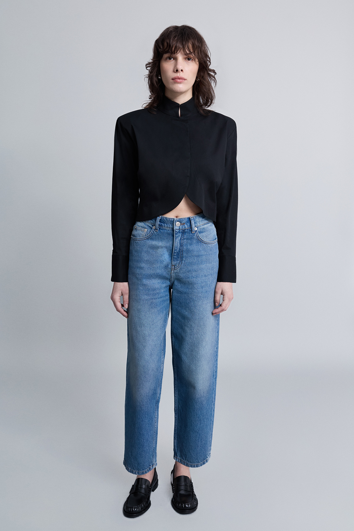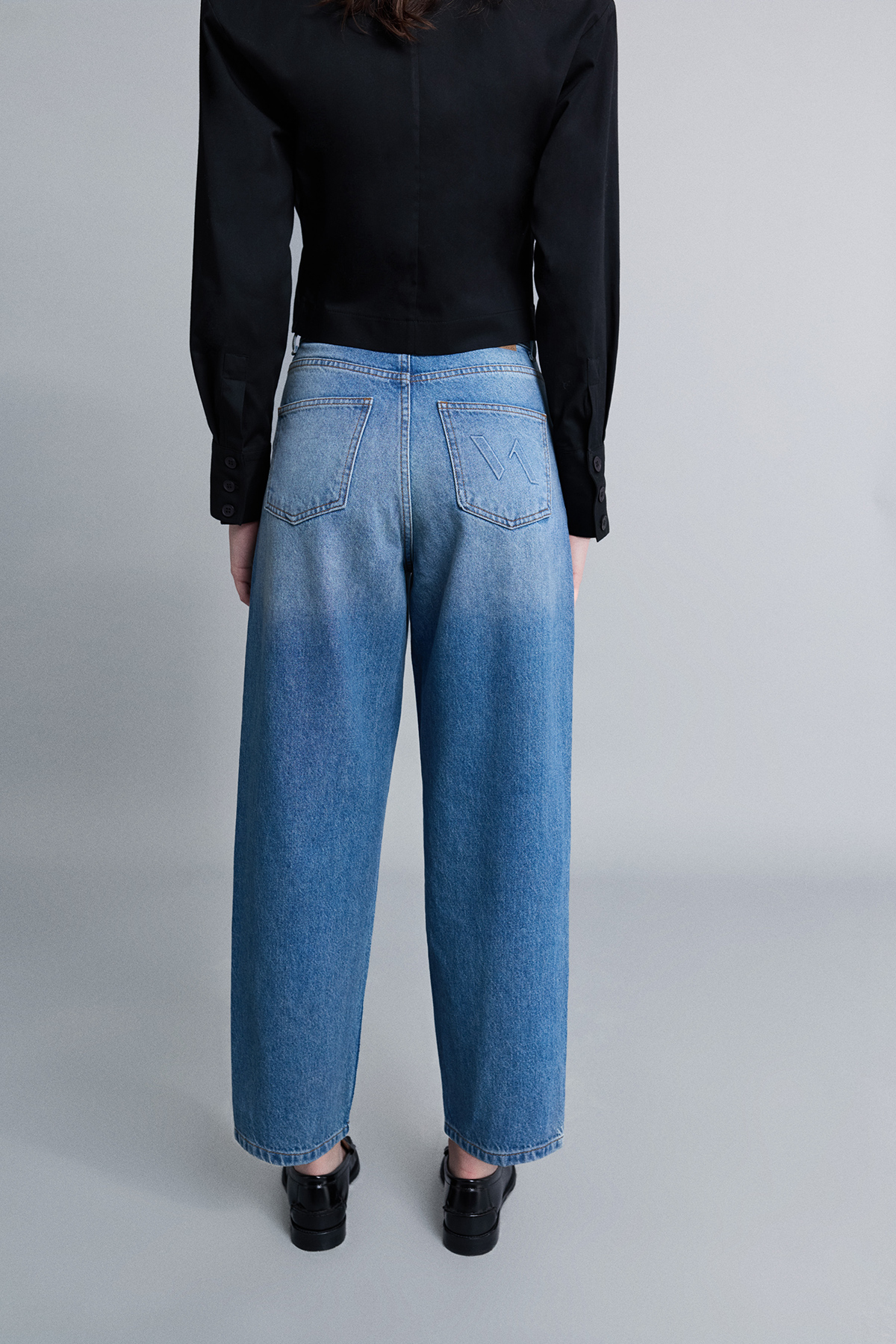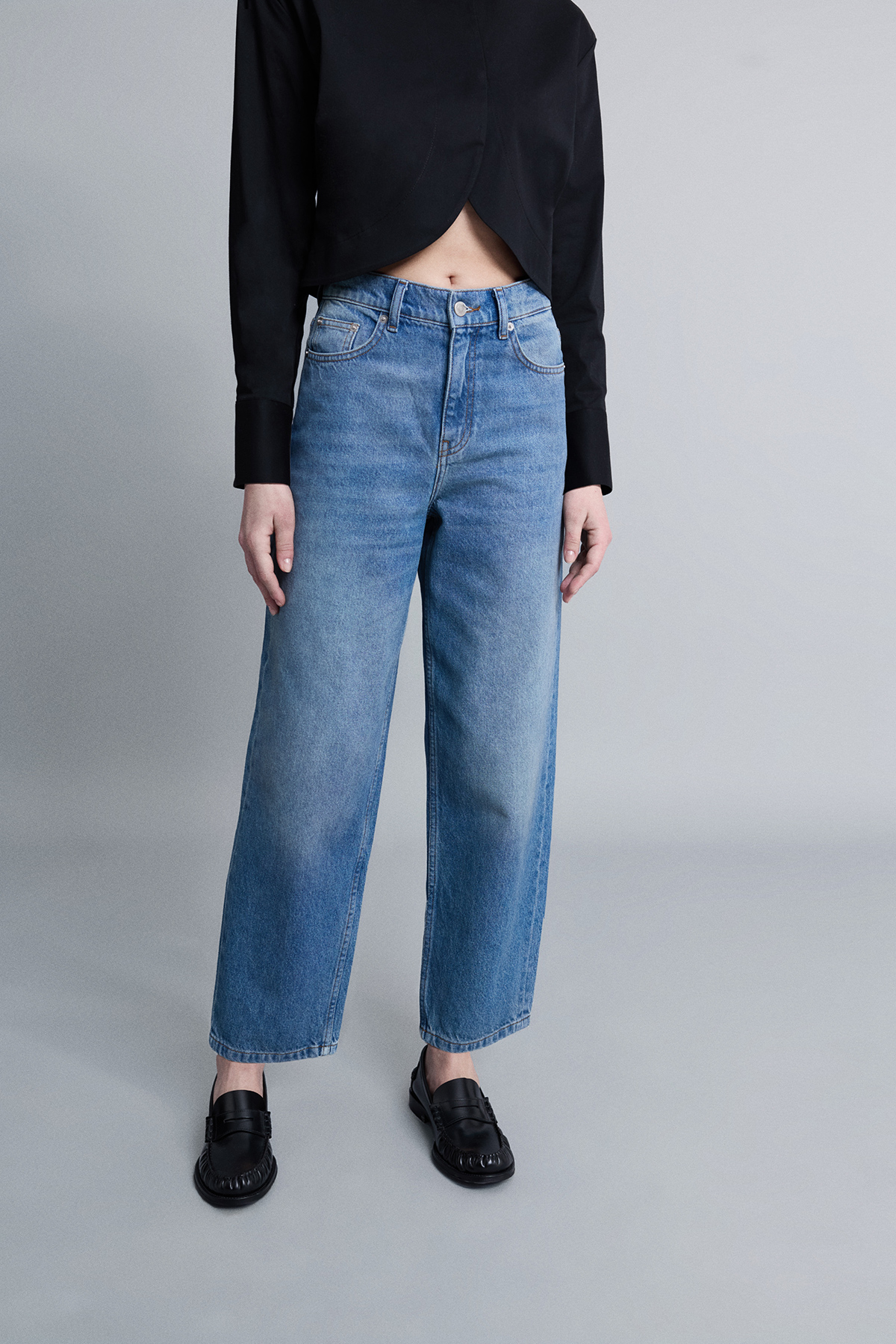 Yüksek bel, tapered, tam kalıp, düğmeli ve fermuarlı, 3 ön 2 arka cepli jean.