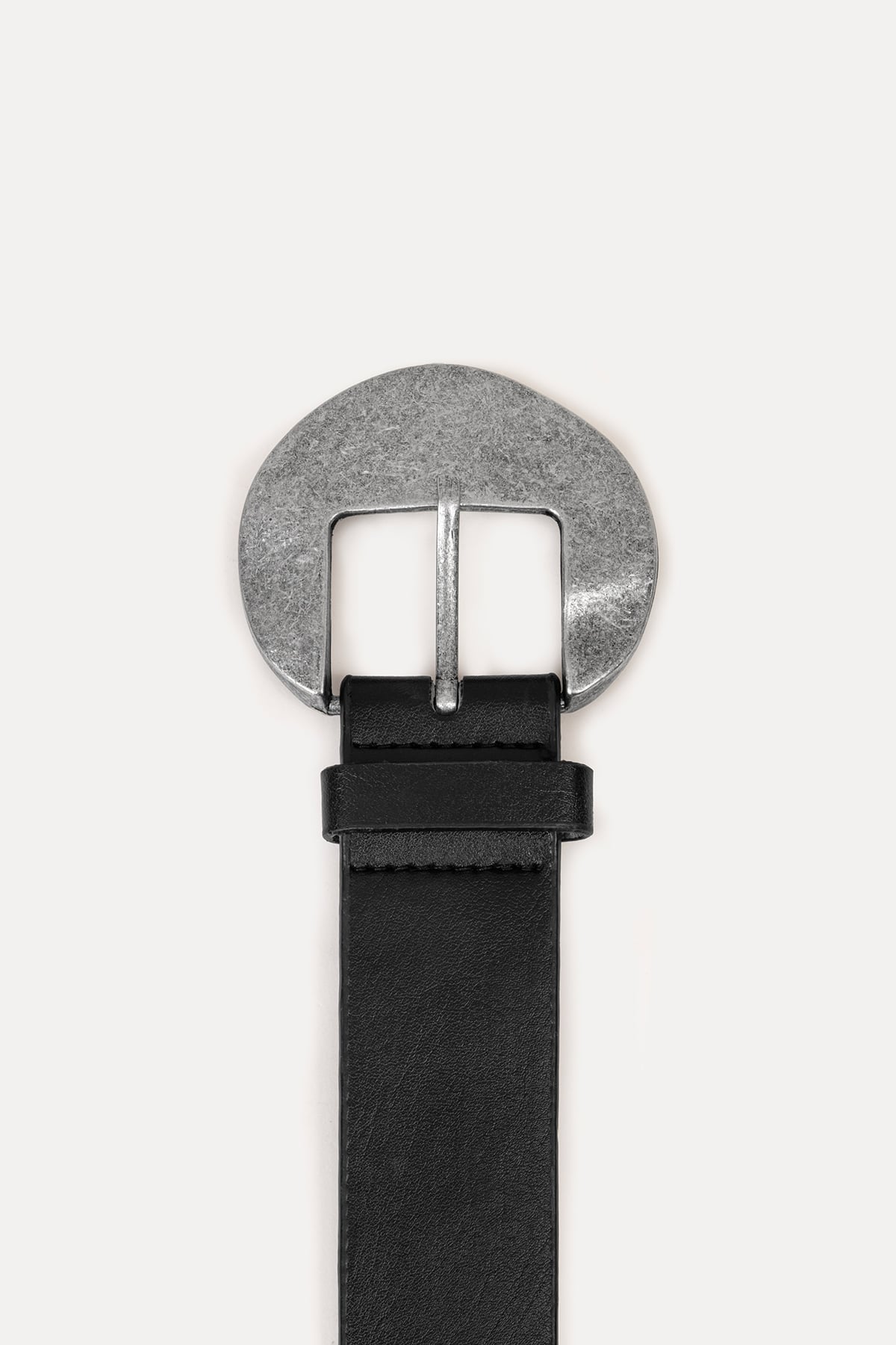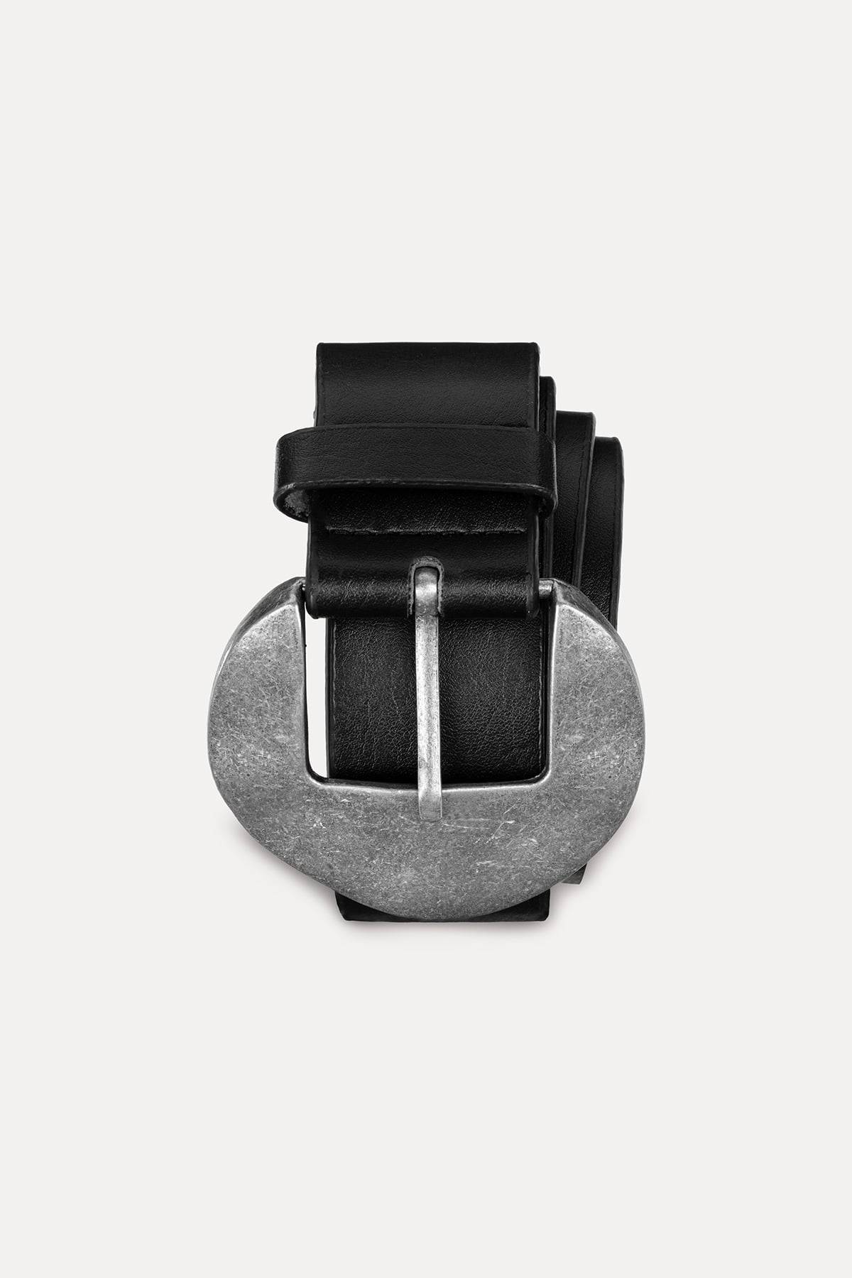 Yuvarlak tokalı deri kemer