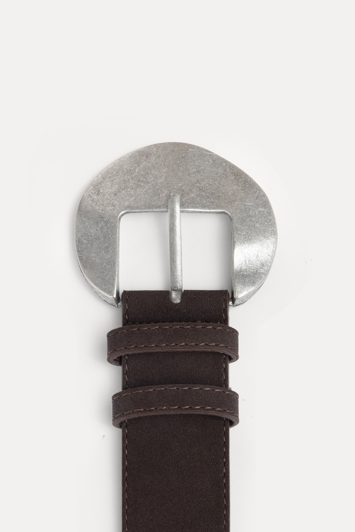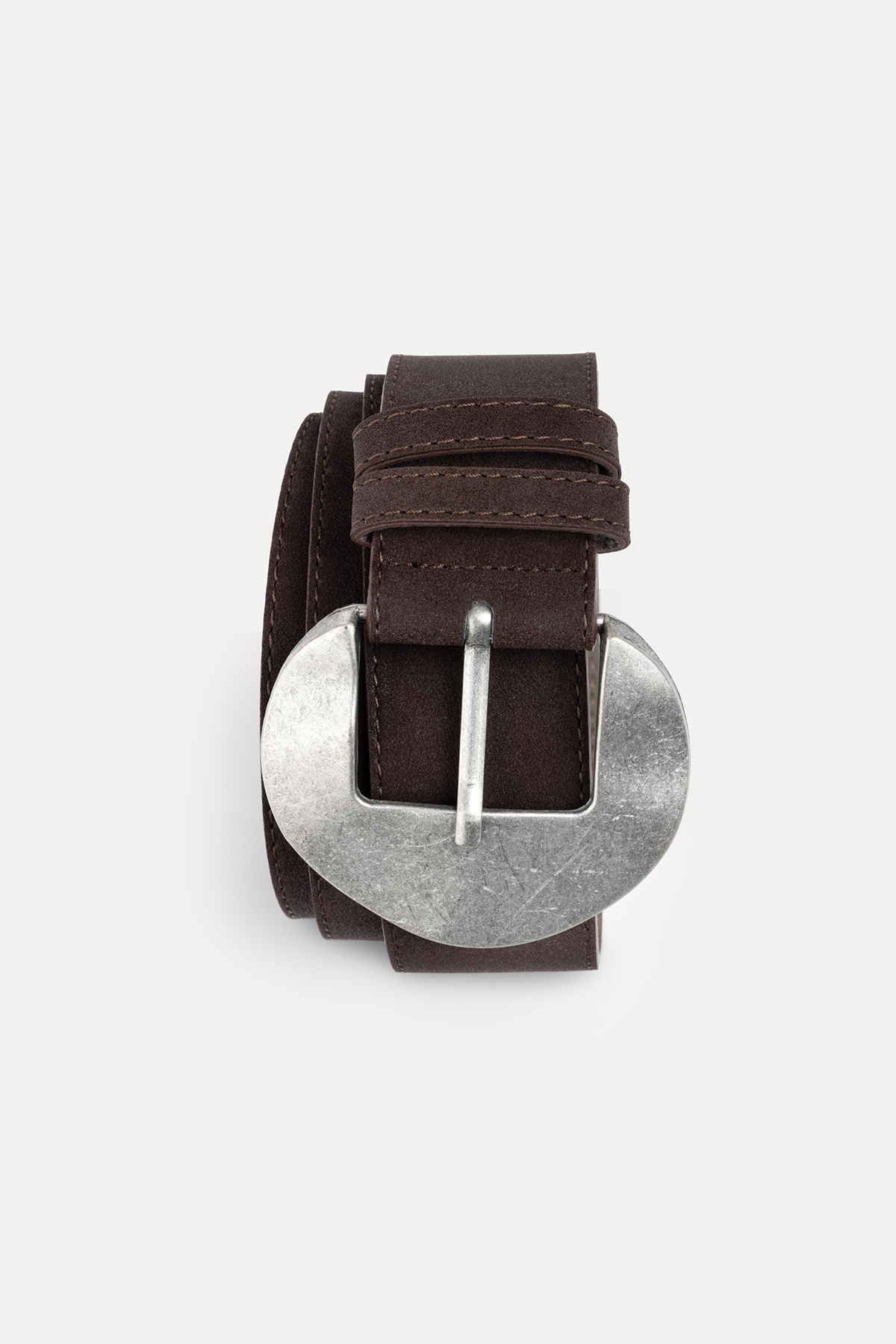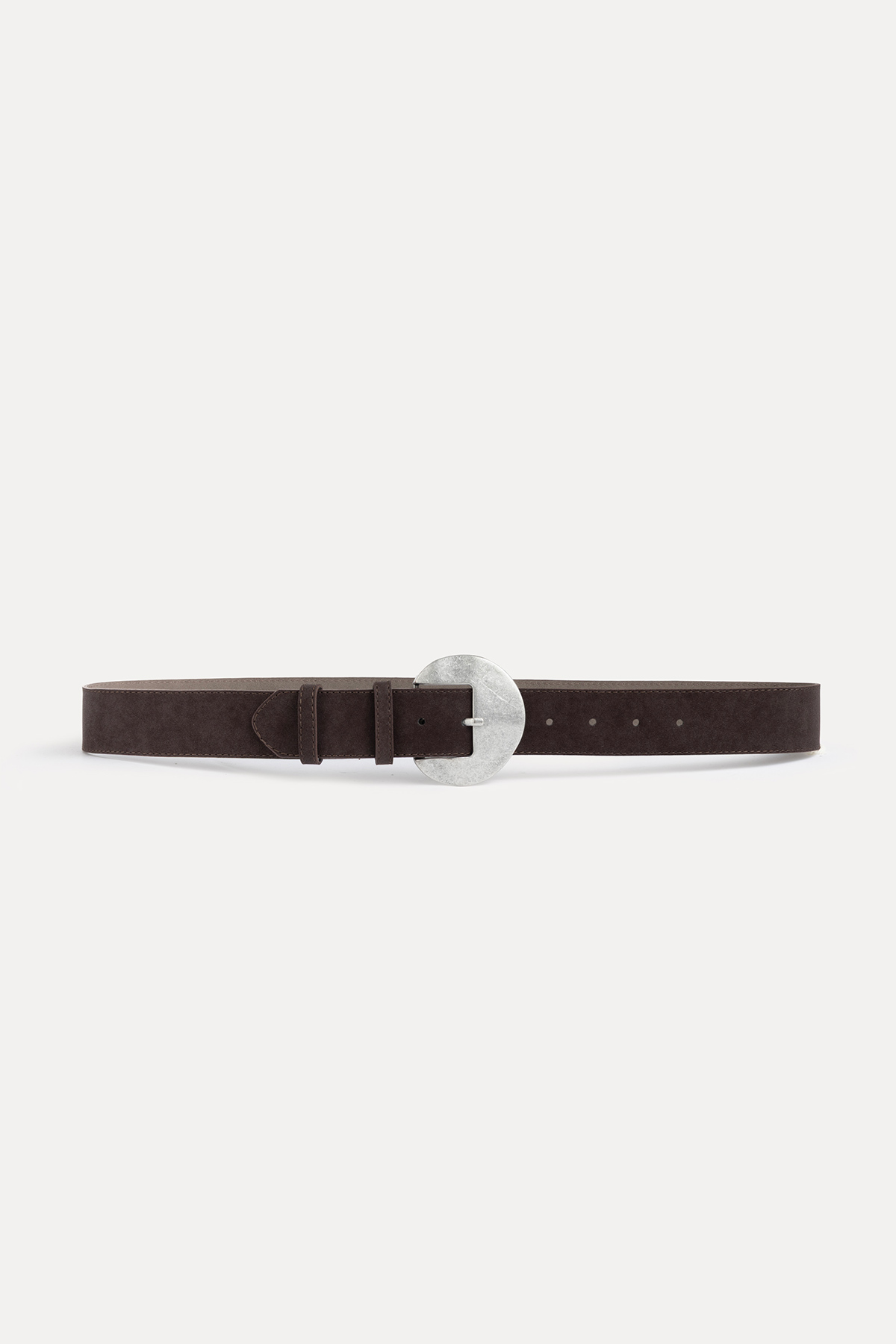 Yuvarlak tokalı süet kemer